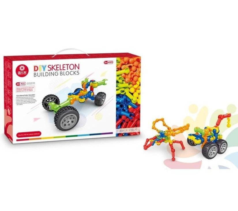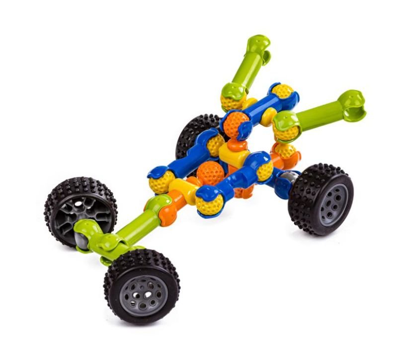 Blokovi su međusobno povezani pritiskom. Elementi izgledaju kao kocke završene kuglicama ili “hvataljkama”. Djeci neće biti teško povezati ih. Kružni spojevi dodatno čine našu igračku pomičnom, npr. kotači automobila će se lako okretati. Igranje s ovim blokovima odlična je zabava za cijelu obitelj.
