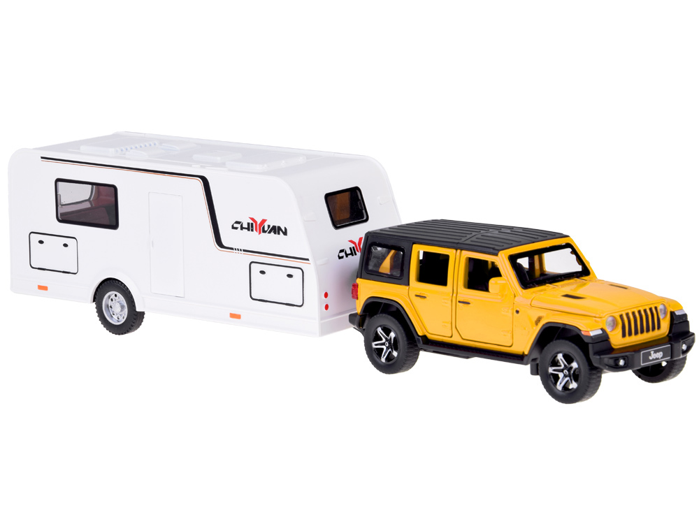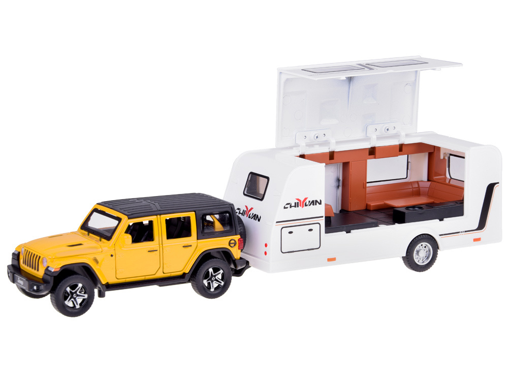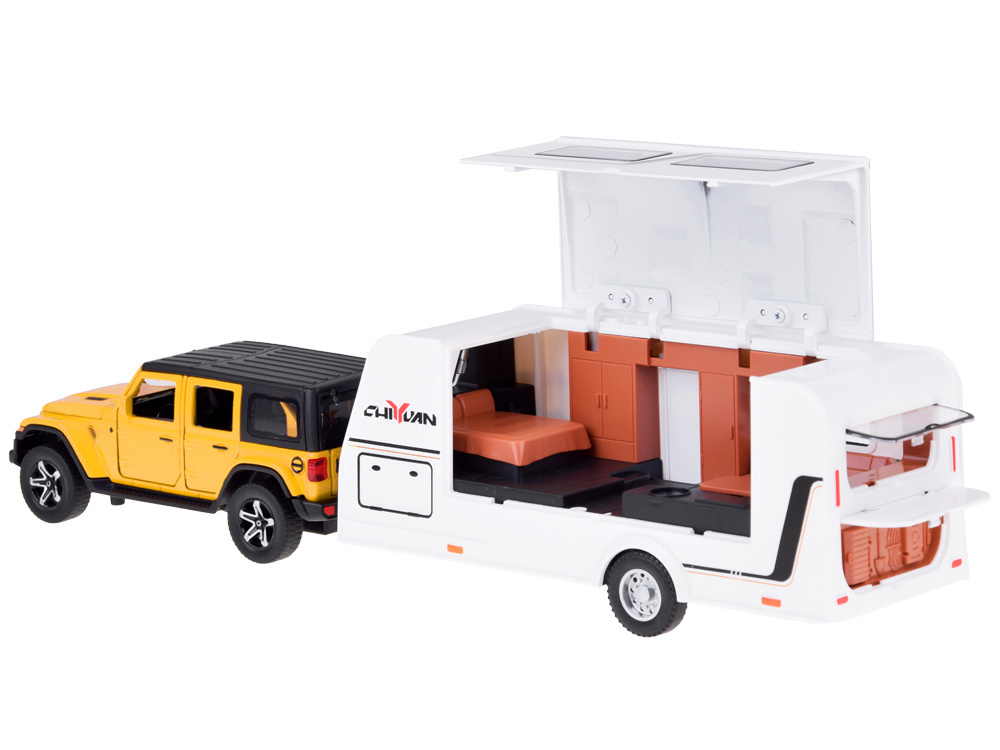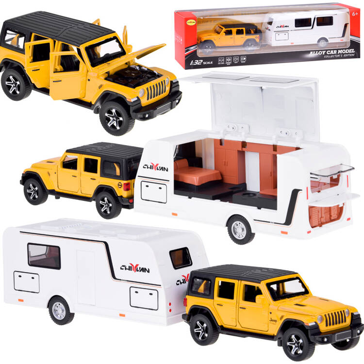 Terenski auto + prikolica za kampiranje savršena je igračka koja će vaše dijete odvesti u svijet prazničnih avantura! Metalni, terenski automobil izrađen je s iznimnom pažnjom za detalje, a svjetleća svjetla u vožnji daju mu realističan izgled. Model u omjeru 1:32 savršeno reproducira popularni SUV, kombinirajući izdržljivost i visoku kvalitetu plastike.