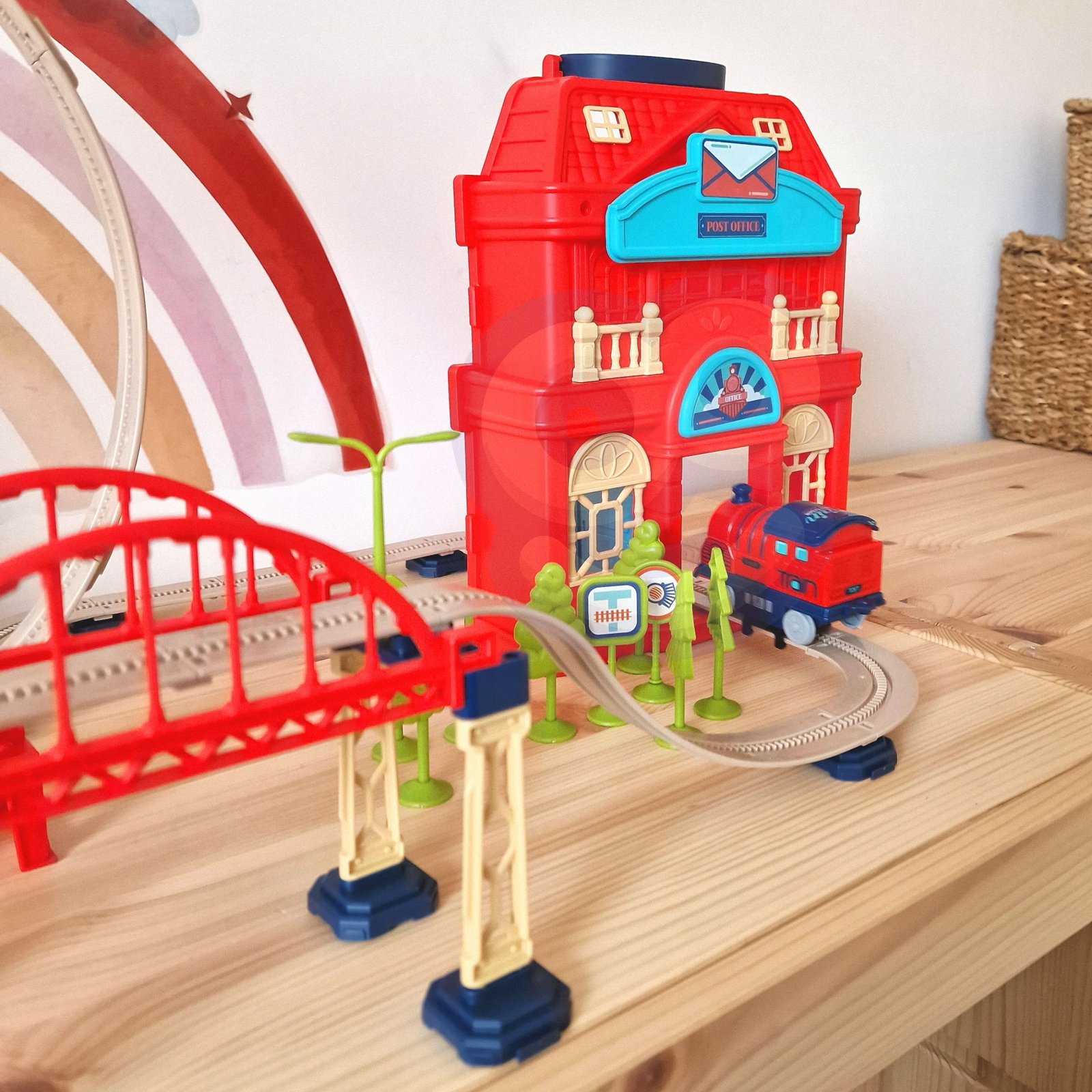 2 u 1 električni vlak brenda Woopie idealan je prijedlog za male ljubitelje kreativne igre. Set uključuje staze ukupne dužine 3,5 m s petljom, vijaduktom i barijerom , što pruža brojne mogućnosti za zabavu. Lokomotiva sa zvučnim efektima čini zabavu još atraktivnijom (AAA baterije nisu uključene) . Kofer služi kao praktično pakiranje i element staze, stvarajući dvije zgrade. Igračka je namijenjena djeci starijoj od 3 godine i sigurna je.