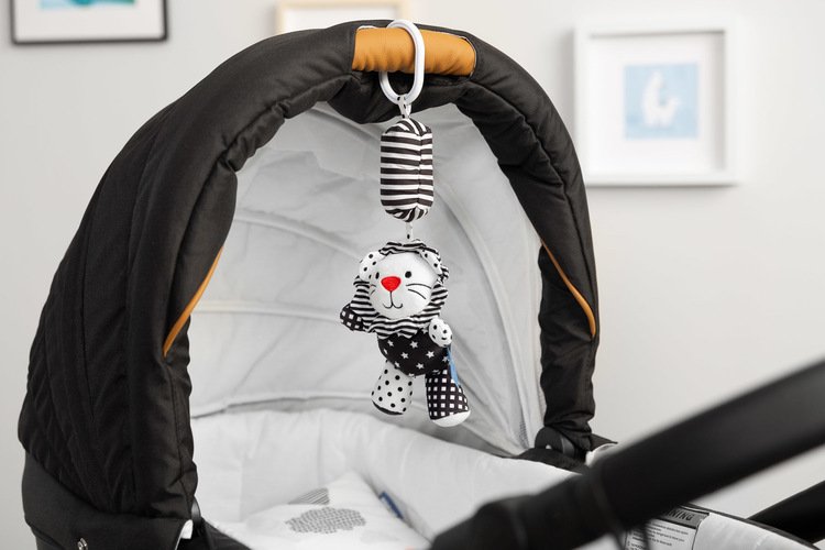 Privjesak za kolica od bijelog pliša privlači pažnju djeteta ne samo svojom karakterističnom crno-bijelom bojom, već i zvončićem ugodnim za uho. Maskota ima univerzalni držač koji omogućuje pričvršćivanje bilo gdje, kod kuće ili u pokretu. Dodatna atrakcija za bebu su šuštanje ušiju i cviker skriven u trbuhu.