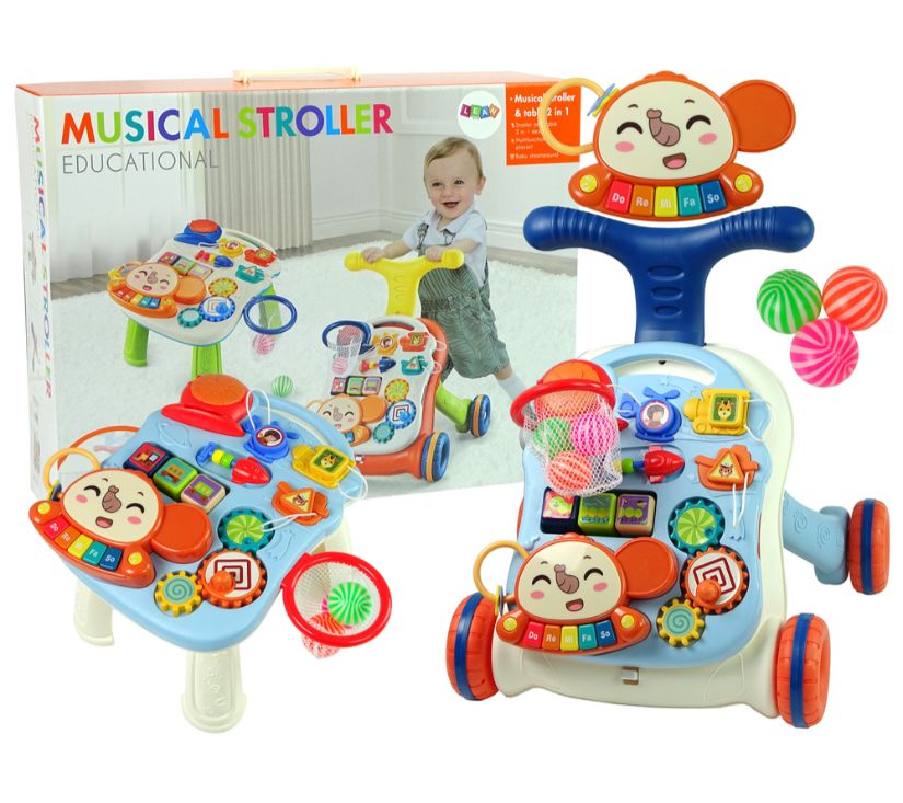 Proizvod koji predstavljamo objedinjuje funkciju hodalice, edukativnog panoa i stola u jednom. Dječja guralica, koju preporučujemo svim mališanima od 12 mjeseci i više, savršen su pomoćnik u učenju samostalnog hodanja. Hodalica je dizajnirana imajući na umu najmlađe, što je jamstvo njezine sigurne izrade i izrade od sigurnih, kvalitetnih materijala. Ako želite da se vaše dijete igra na licu mjesta, možete zaključati stražnje kotače zahvaljujući bravi i uliti vodu u posudu kako bi bila stabilna, tako da ne morate brinuti za sigurnost vašeg djeteta. Jednom zaključana, kolica će stajati mirno. Obrazovna ploča na prednjoj strani hodalice je odvojiva, što vam omogućuje da se igrate u krevetiću ili u pokretu bez korištenja ostale opreme.