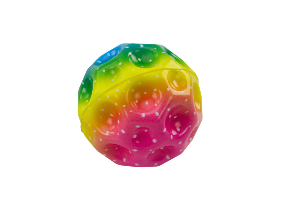 Šarena svjetleća lopta s udubljenjima je idealna igračka za poskakivanje i miješenje, kreirana imajući na umu razvoj senzornih sposobnosti djeteta. Njegova kompaktna veličina od 7 cm omogućuje vam da ga ponesete bilo gdje, pružajući zabavu u svakoj situaciji.