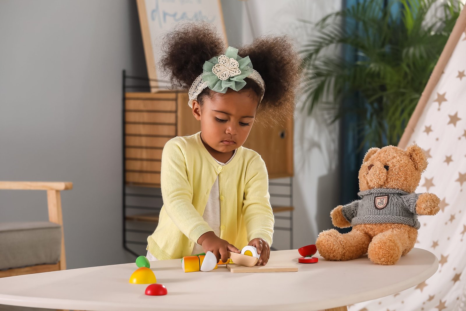 Djeca će se zabaviti istražujući različite oblike i boje dok pripremaju ukusan obrok. Set uključuje dasku za rezanje i lažni nož za rezanje voća na pola, tako da nakon što vaše dijete završi s kuhanjem, elementi se mogu ponovno sastaviti zahvaljujući sustavu gumba nalik na čičak. Izvrsno za kreativnost i igranje uloga.