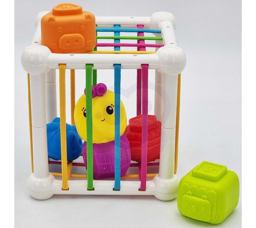 Fleksibilna senzorna kocka potaknut će razvoj vašeg djeteta! Igra uključuje umetanje i vađenje elemenata iz edukativne kocke. Igrajući se, dijete razvija osjetila i usavršava svoje motoričke sposobnosti. Svaki od6 tvrdih kockicase ističe, što budi djetetovudovoljno znatiželju da ih poželi izvaditi i vratiti u sortirku. Blokovi se mogupovezatiu toranj. Kockice su različitih oblika i tekstura kako bi razvile djetetovu senzoriku, um i potaknule dijete na eksperimentiranje. Osim toga, kada dijete odraste, kocke se mogu koristiti zaučenje boja. Osim toga, svaki blok ima različitbroj koji određuje redoslijed kojim bi toranj trebao biti složen, tako da se blokovi mogu koristiti zaučenje brojanja. Ostalo sjajno funkcije blokova uključuju: da se svaki blok može koristiti kao zvečka. Kocka sorter ima savitljive šarene gumice koje su ugodne djetetu. Potrebna igračka djetetu u ranoj i kasnijoj dobi života – igračka za godine!!