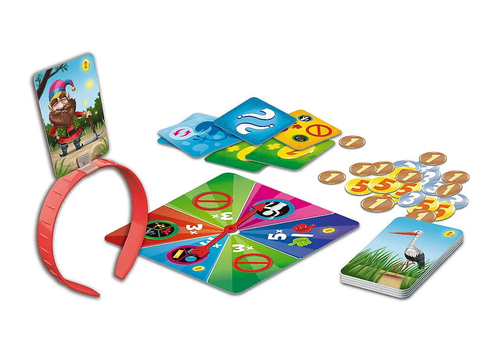 Sadržaj kutije 56 dvostrano ilustriranih kartica s lozinkama 4 trake za glavu s ručkom strelica i vrtača za crtanje savjeta Žetoni s 24 točke 6 posebne pločice s uputama