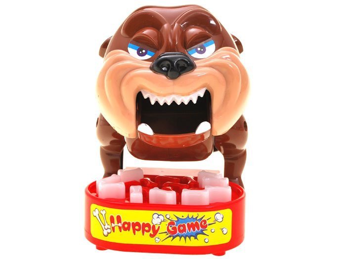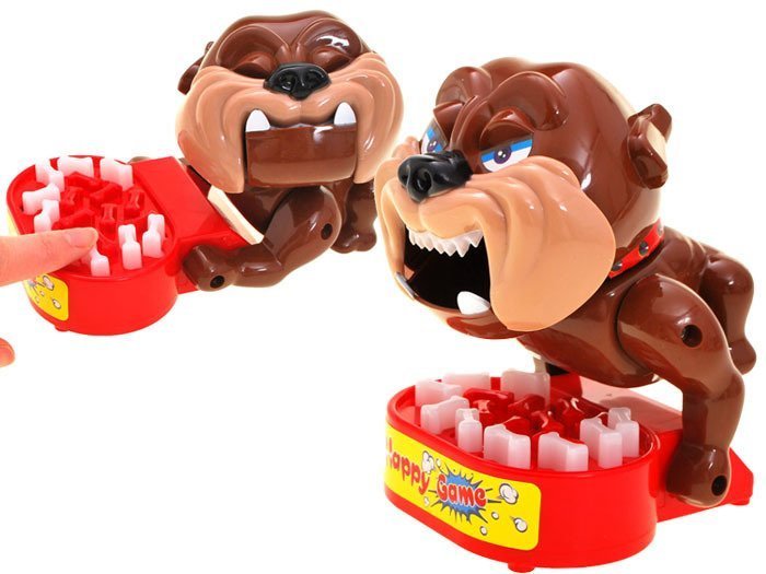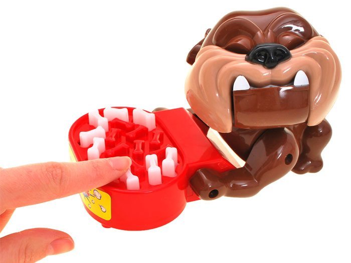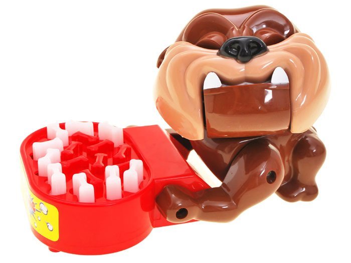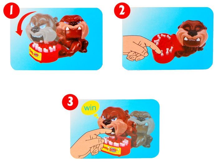 Nježno pritisnite kosti u zdjelu Kada pritisnete krivi zub pas će htjeti zaštititi svoju hranu i ugrize te za prst Kada te pas uhvati za prst, ispadaš iz igre.