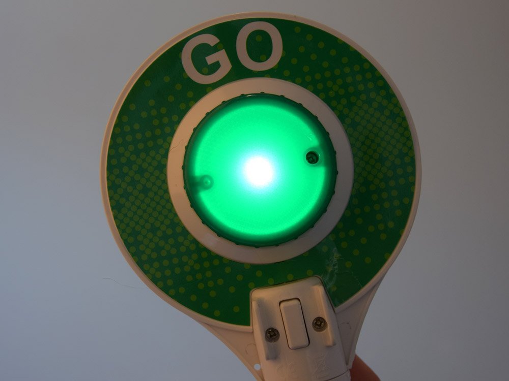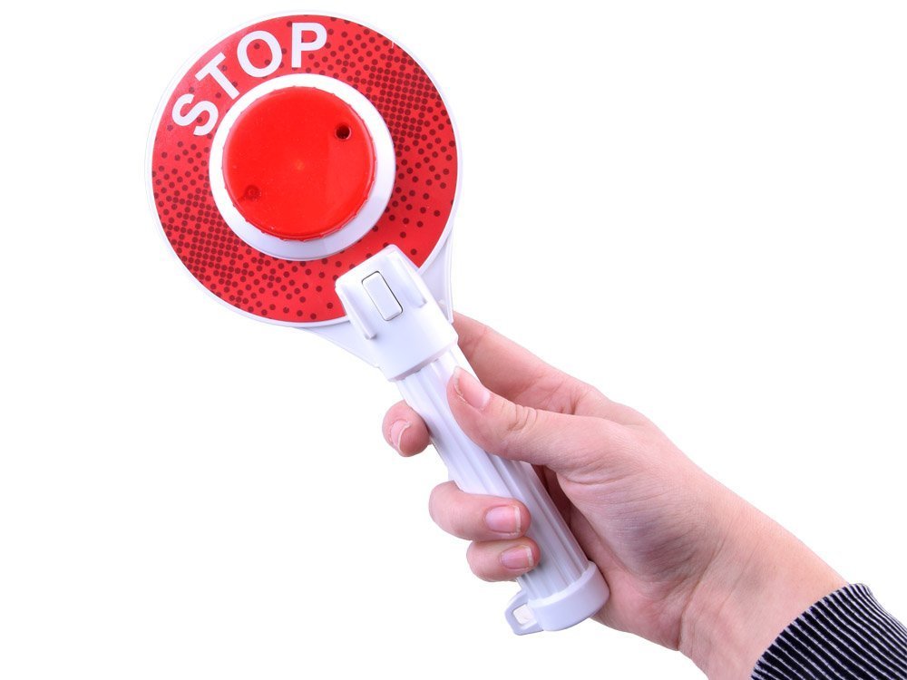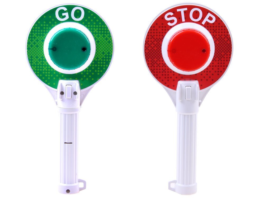 Palica je dvostrana, s jedne strane ima zeleno svjetlo s natpisom KRENI, s druge strane crveno svjetlo s natpisom STOP.