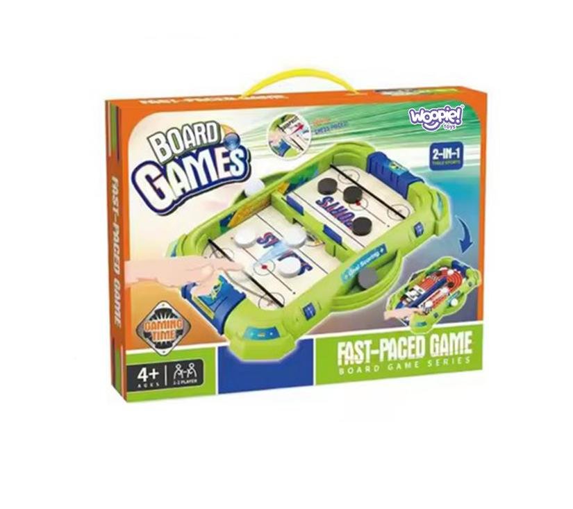 2-u-1 arkadna igra marke WOOPIE je inovativna igra koja kombinira dvije discipline: mini hokej i fliper . Obje mini igrice pozitivno utječu na razvoj djeteta, potiču maštu, strateško razmišljanje i planiranje. Odlična je zabava za cijelu obitelj i za samostalnu igru. Zahvaljujući svom jedinstvenom i šarenom dizajnu, ova igra odmah privlači pozornost malog djeteta, nudeći zajamčenu zabavu dugo vremena!