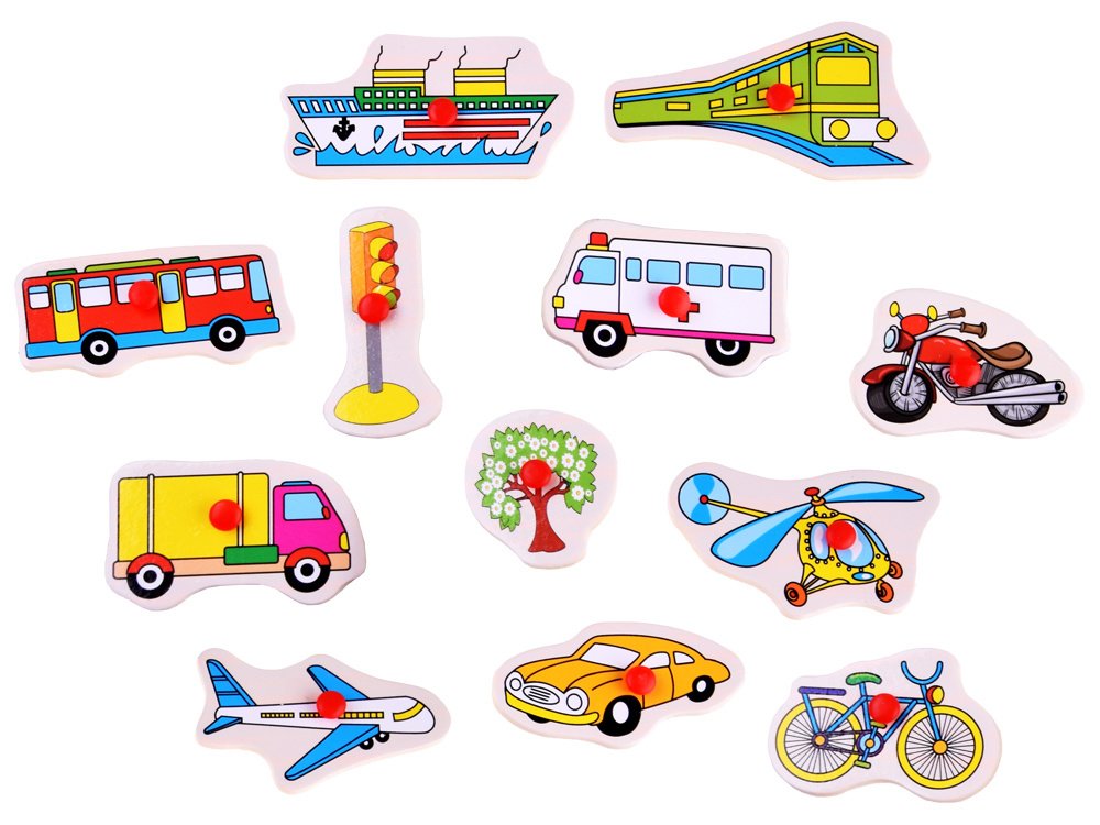 Drvena slagalica s raznim prijevoznim sredstvima i predmetima koji se mogu vidjeti po cesti spoj je učenja i zabave. Tijekom igre dijete može vježbati sposobnost uspoređivanja, perceptivnost i koordinaciju oko-ruka. Osim toga, mališan ima priliku naučiti nove riječi ili vježbati govorni aparat oponašajući zvukove koje određeno vozilo ispušta. Drvene slagalice zasigurno će pružiti mnoge sate odlične zabave.
