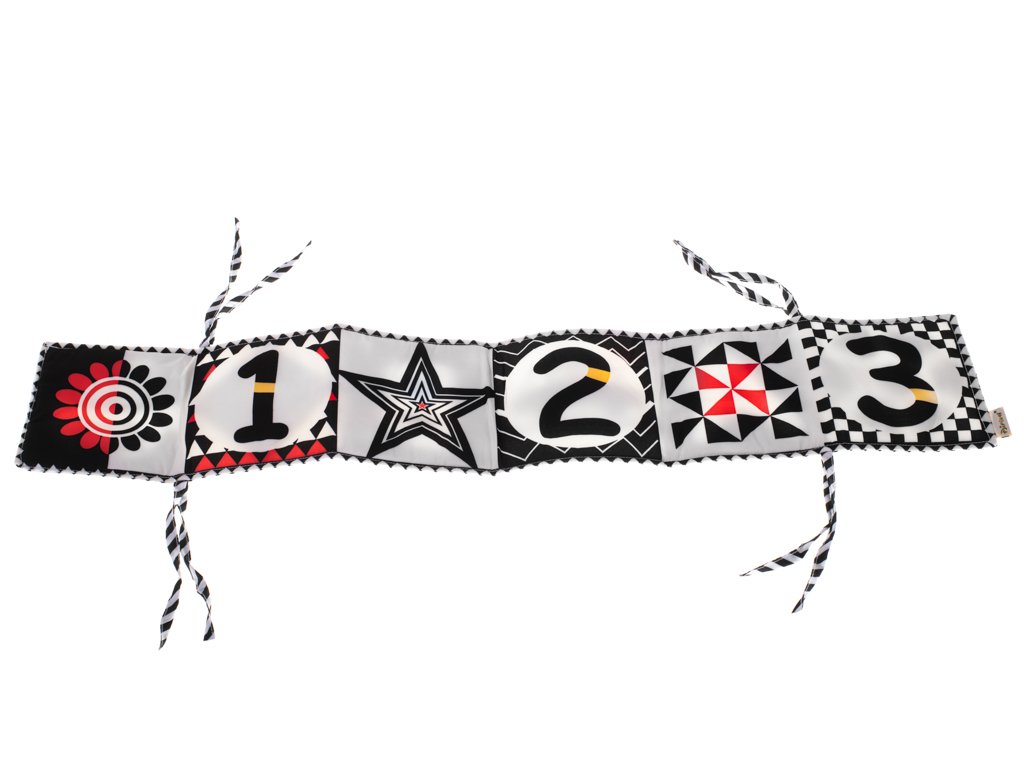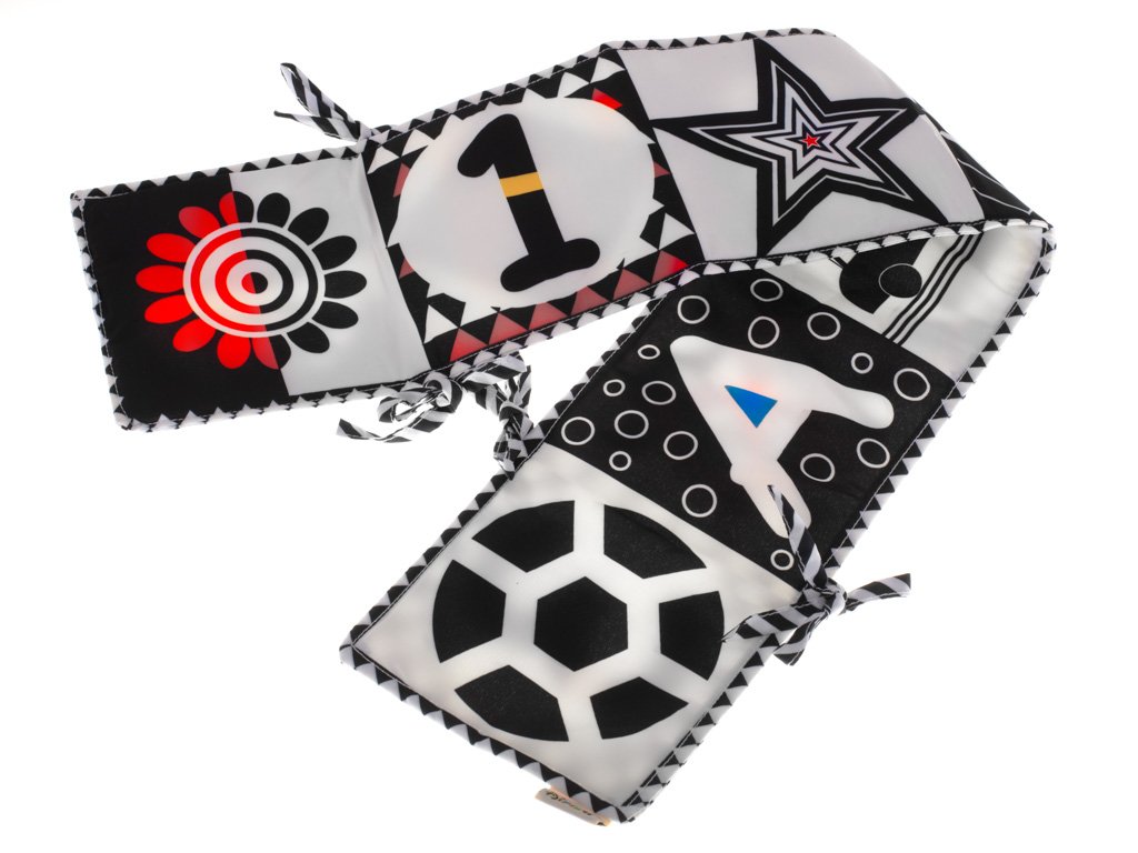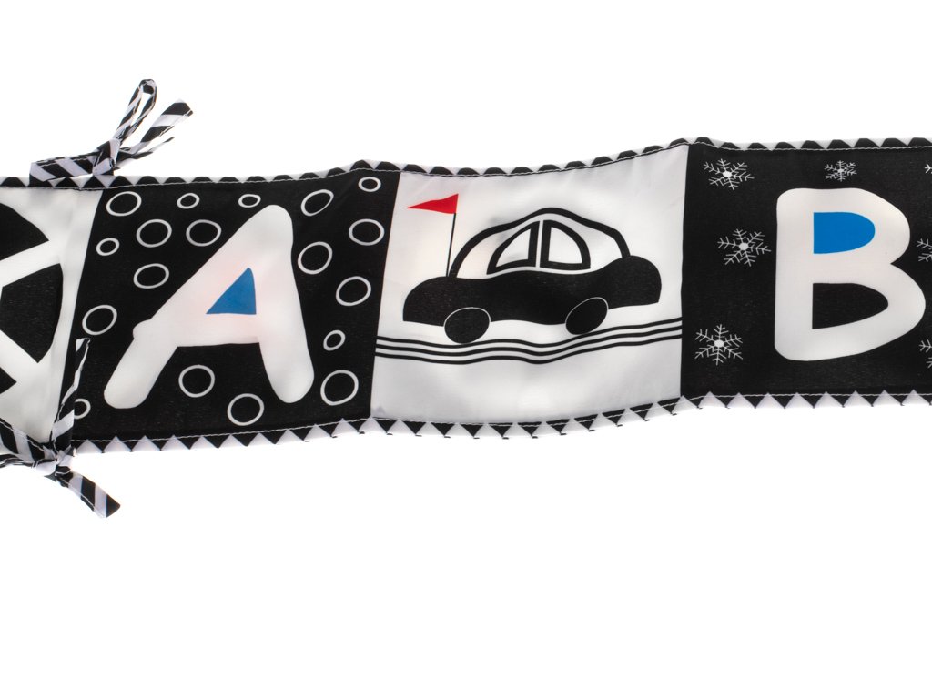 Knjižica u obliku harmonike idealna je kao zaštitna prostirka za krevetić. Knjižica se na prečke može pričvrstiti uzicom.