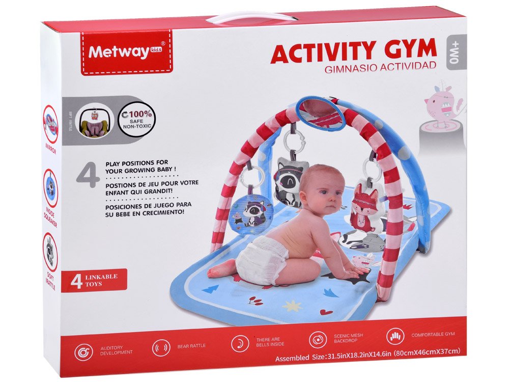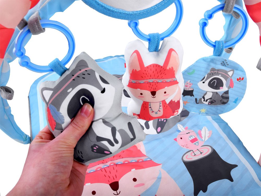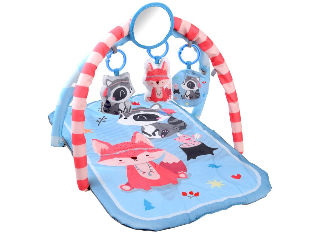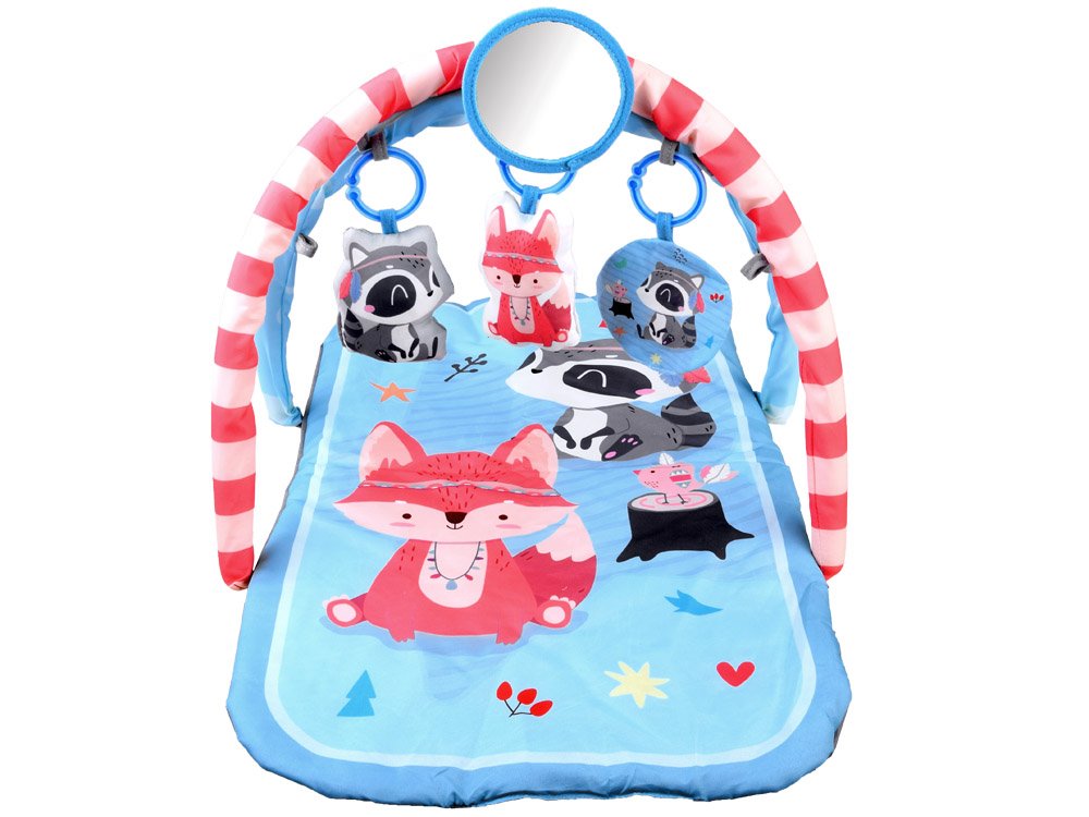 Podloga u prekrasnim bojama, mekana, izrađena od materijala koji se lako čisti bit će savršena za svakodnevnu njegu bebe. Podloga, osim sjajne grafike, ima lukove na koje se pričvršćuju igračke. Podloga se može smotati i uvijek nositi sa sobom, kako bi se beba udobno igrala, npr. kada je u posjetu baki.