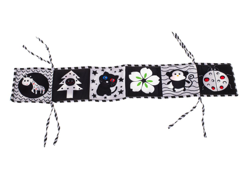 Knjižica u obliku harmonike savršena je kao zaštitna prostirka za krevetić. Na prečke se može pričvrstiti uzicu.
