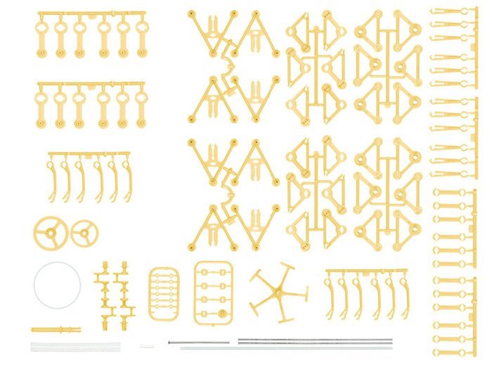 Komplet uključuje elemente koji omogućuju izradu pogonske osovine koja pokreće vjetrenjaču koja ima zadatak pokrenuti cijelu konstrukciju u pokretu.