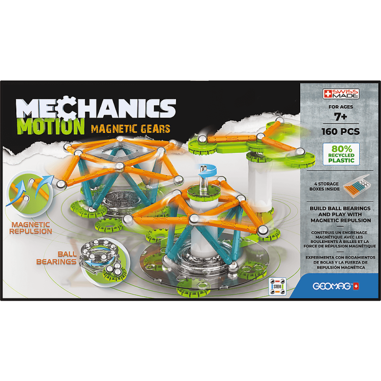 Linija MOTION reproducira poznati kuglični ležaj koji je izumio Leonardo Da Vinci, kako bi pokrenuo naše magnetske konstrukcije s potpuno novom platformom za igru. Izgradite svoje nevjerojatne Geomag modele na kugličnim ležajevima i koristite sile odbijanja magneta kako biste magično stvorili kretanje, bez kontakta.
