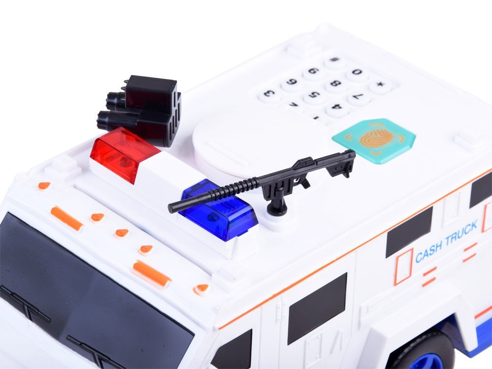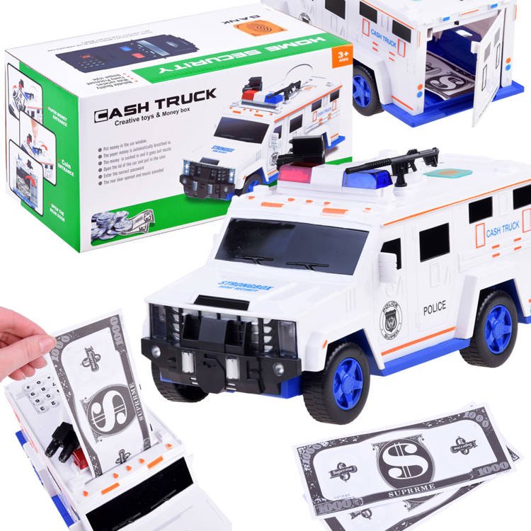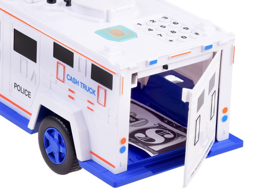 Automobil sa zvučnim efektima dizajniran je za zaštitu i čuvanje bebine ušteđevine. Ovaj automobil ispunjava ove zahtjeve. Policijski auto ima pristupnu šifru, vrata se automatski otvaraju nakon skeniranja vaših otisaka prstiju, a auto ima i nevjerojatne zvučne efekte. Policijski auto je kao igračka, a zapravo je sef za vašu kasu 🙂