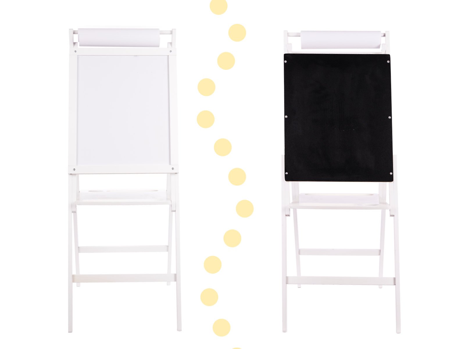 Bijela strana ploče namijenjena je za pisanje ili crtanje markerima, na nju možete pričvrstiti i magnete. Nakon okretanja pojavit će se ploča s kredom.