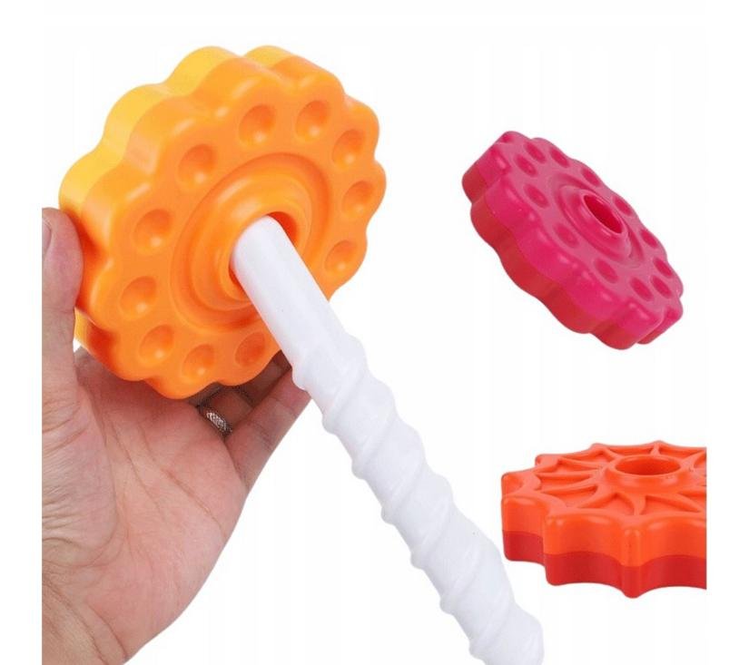 Toranj brenda WOOPIE jedinstvena je igračka za djecu koja uvodi bebe u svijet fascinantnih boja, oblika i pokreta. Sastoji se od raznobojnih elemenata koje postavljamo na štap tako da ih zavrtimo. Ova piramida ne samo da zabavlja, već i obrazuje, podržavajući sveobuhvatan razvoj djeteta . Zahvaljujući čvrstoj konstrukciji od sigurnih materijala, upleteni toranj pruža izdržljivu i sigurnu igračku koja će sigurno zanimati vašu bebu mnogo sati. Set se sastoji od 6 diskova + postolja u raznim bojama i oblicima te štapića postavljenog na postolje. Elementi su dvobojni kako bi dodali raznolikost u slaganje diskova u toranj na različite načine. Sastavljanje piramide od djeteta zahtijeva logično razmišljanje i planiranje sljedećih koraka.