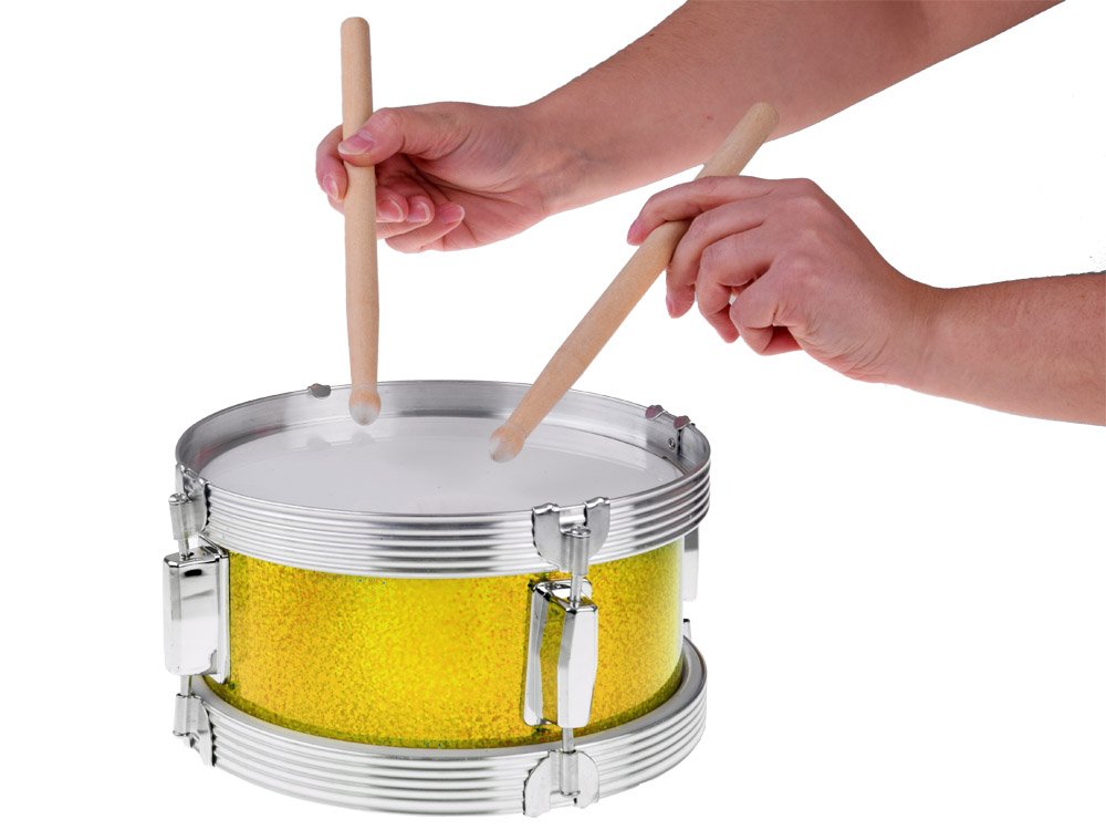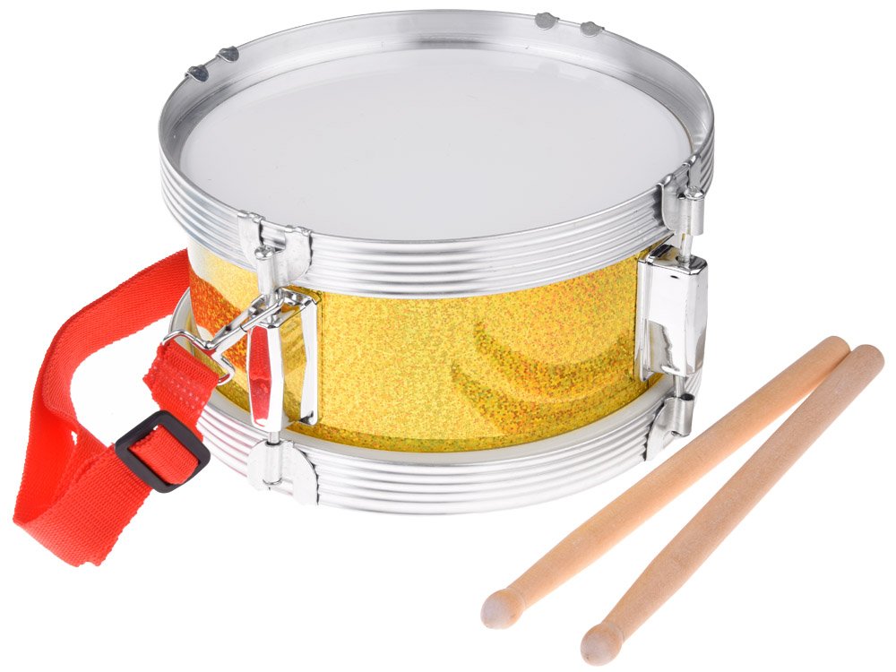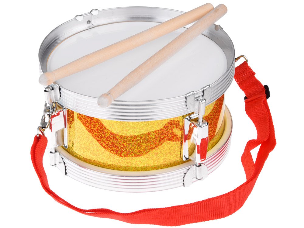 Veliki, šareni, sjajni bubanj bit će savršen za svakog Malog glazbenika. Bubanj ima metalni rub za izdržljivost i plastičnu membranu. Pomoću drvenih štapića koji su uključeni u set, dijete može svirati zvučne sekvence, učeći osjetiti ritam. Remen od tkanine osigurava udobnu upotrebu instrumenta.