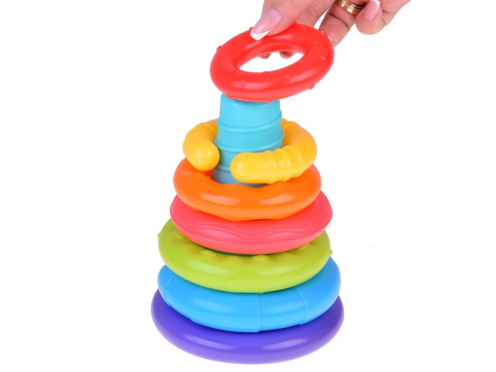 Senzorne piramide idealne su za djecu od 6 mjeseci starosti. Šareni toranj, sastavljen od šest elemenata različitih uzoraka i tekstura, privući će pozornost vašeg djeteta i zadovoljiti njegovu znatiželju o svijetu. Igračka ne samo da potiče dječju maštu, već također podržava vizualnu i motoričku koordinaciju. Diskovi su izrađeni od mekane plastike. Raznolikost tekstura i boja potiče razvoj osjetila vašeg djeteta i potiče na daljnja otkrića.