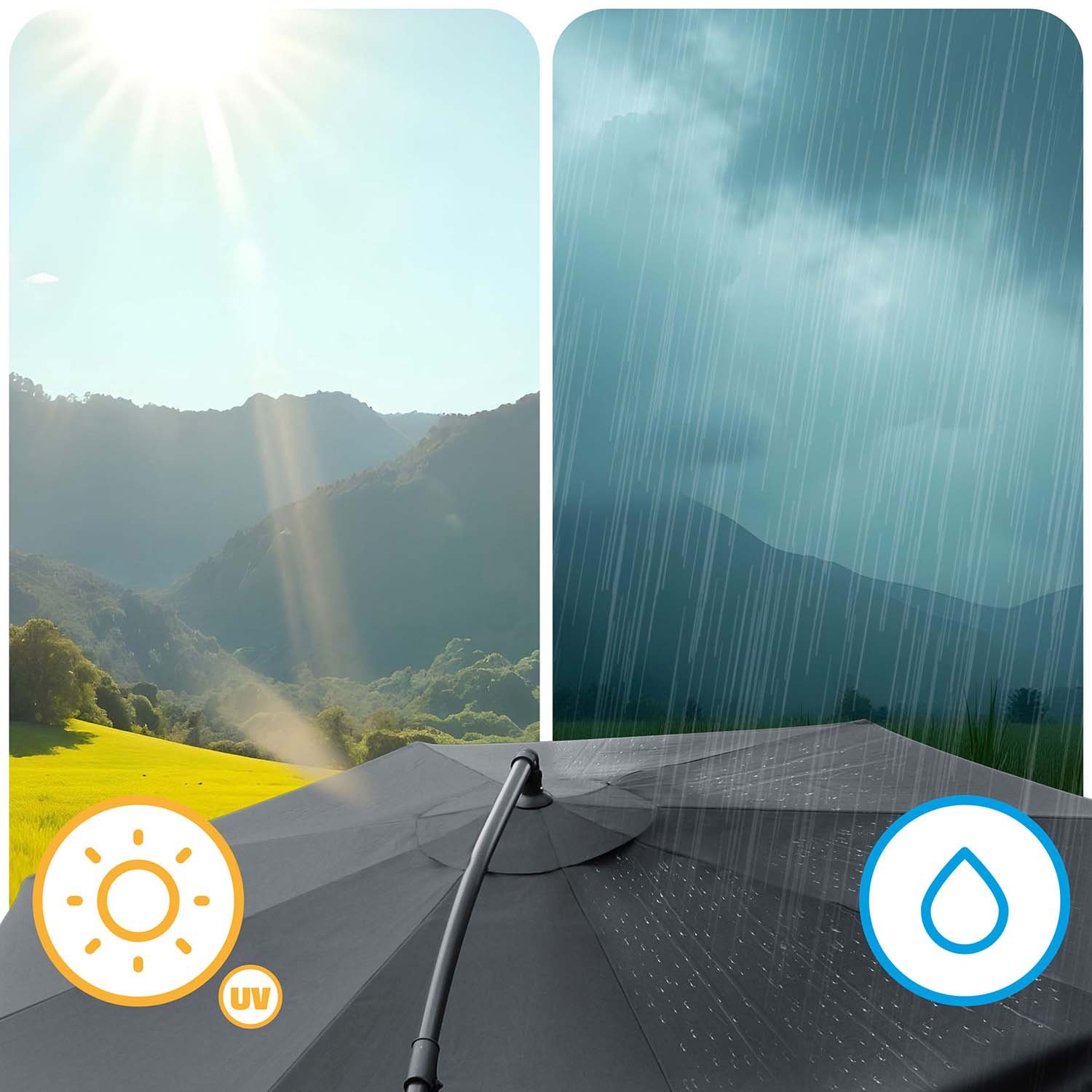 Kiša? Nema šanse! Zahvaljujući vodootpornom PE materijalu, naš kišobran učinkovito štiti od svakog pada.