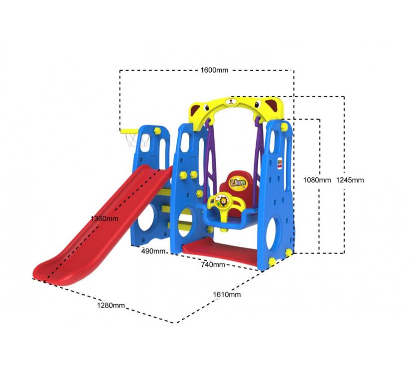 3u1 ljuljačka, tobogan i košarka, plavi set