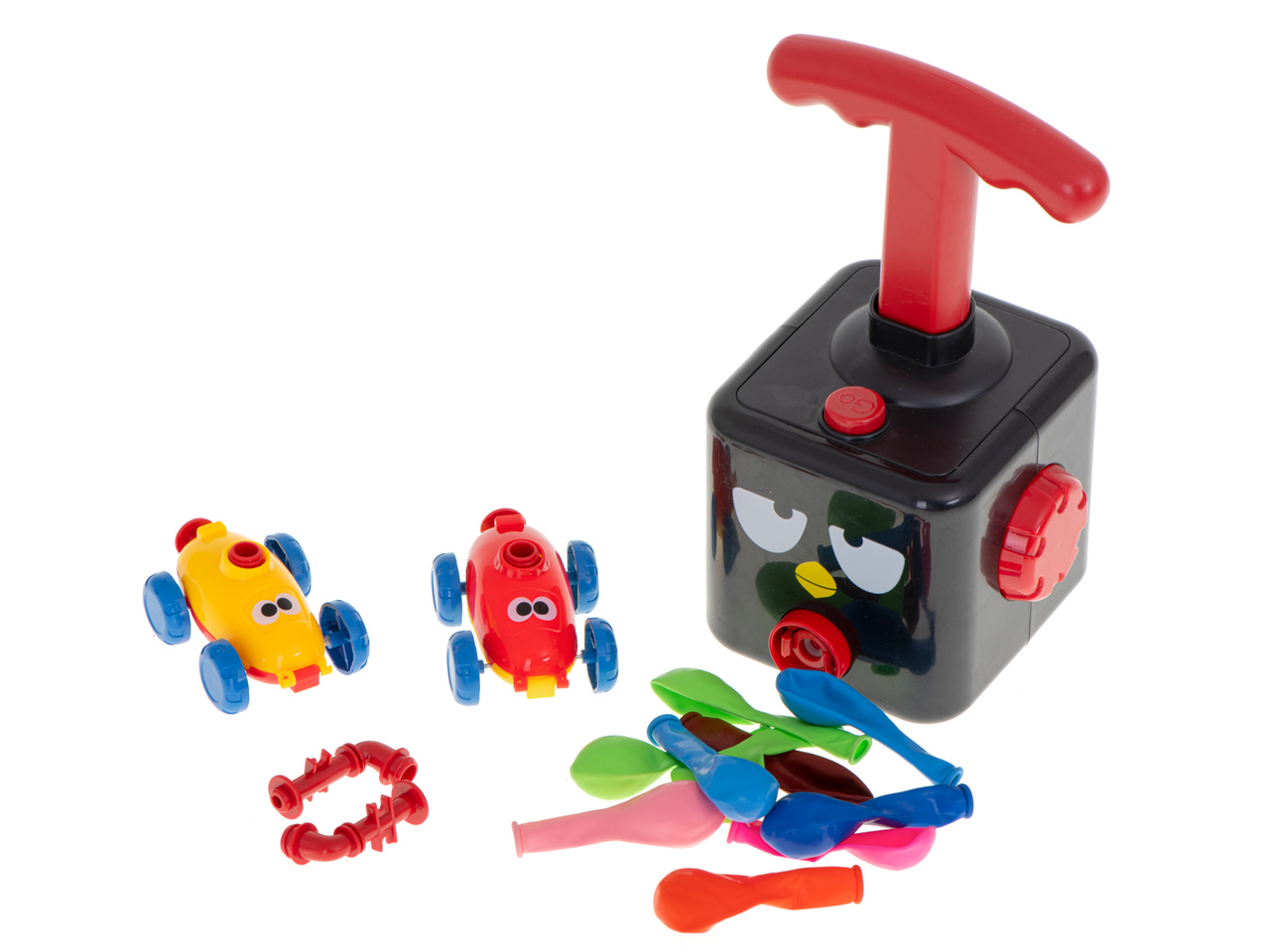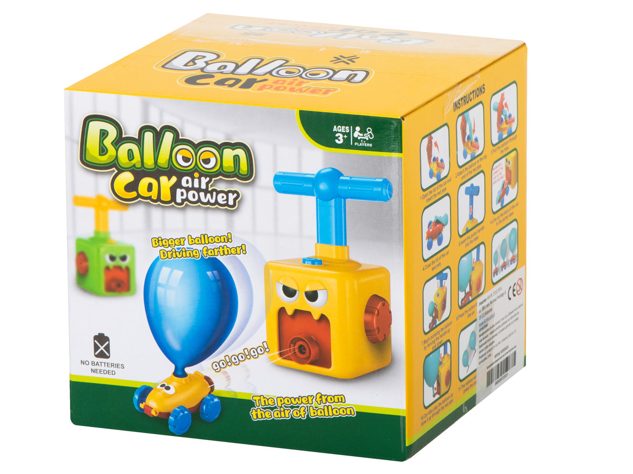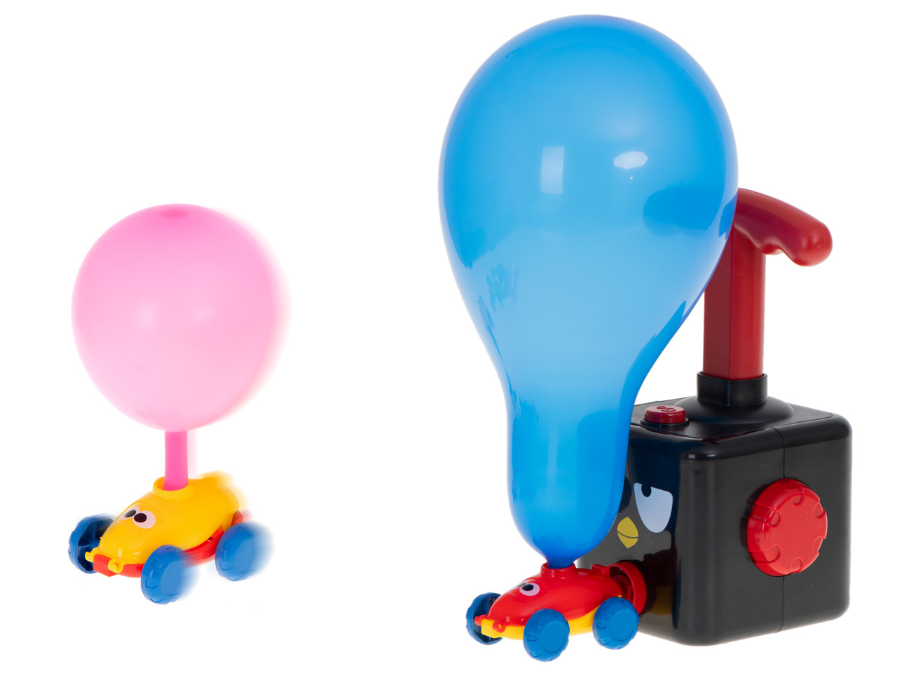 Za početak postavite nenapuhani balon na automobil. Zatim spojite automobil na lanser i napuhajte balon. Nakon što se balon napuni zrakom, pritisnite gumb na lanseru i gledajte kojom brzinom će putovati po tepihu u sobi.