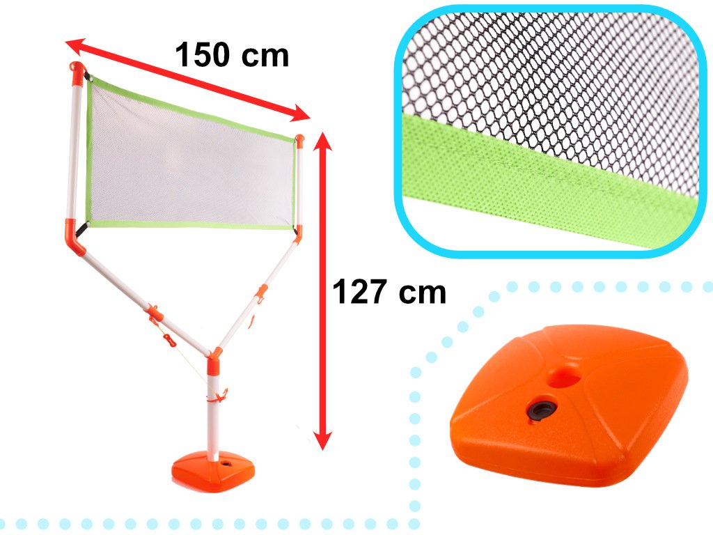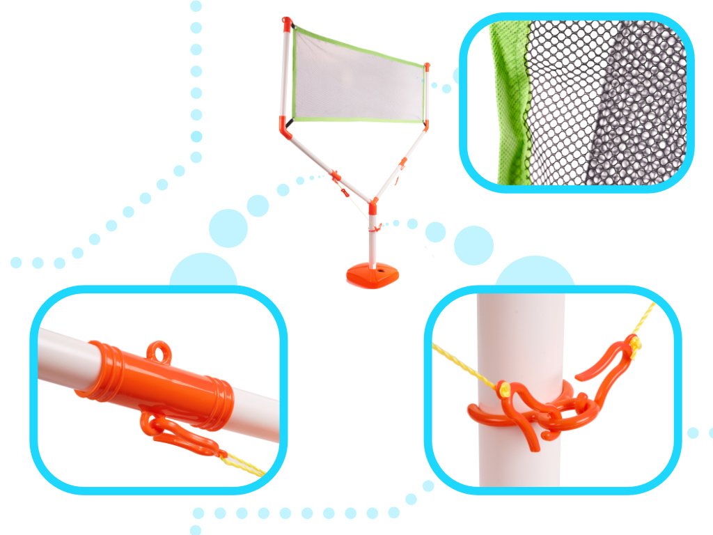 Vrijeme je nevažno, jer ovaj set možete postaviti ne samo vani, već i unutar vašeg doma! Sve je to zahvaljujući bazi koja se može napuniti vodom ili pijeskom, bez zamornog zabijanja stupova u zemlju.