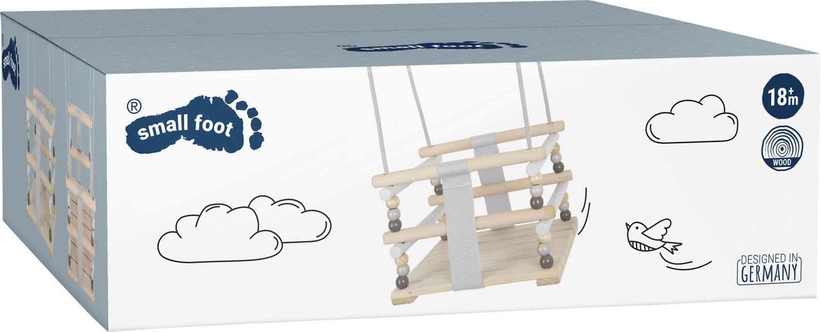 Ova poluzatvorena ljuljačka u minimalističkom skandinavskom stilu obećava da će bebama i dojenčadi donijeti sve vrste zabave u ljuljanju. Četiri zatvorene strane i dvije trake otporne na trganje pružaju maksimalnu sigurnost. Zahvaljujući jednostavnoj sivoj boji i velikoj količini prirodnog, glatkog i mekog drvenog materijala, ova ljuljačka ostavlja izvrstan vizualni dojam u zatvorenom i otvorenom prostoru. Apsolutno klasična ljuljačka modernog izgleda za najmlađe!