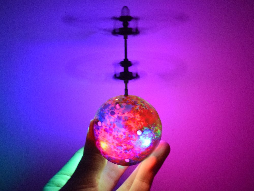 -Igračka sama leti, tijekom leta bljeska šarenim svjetlom, možete je kontrolirati rukom.