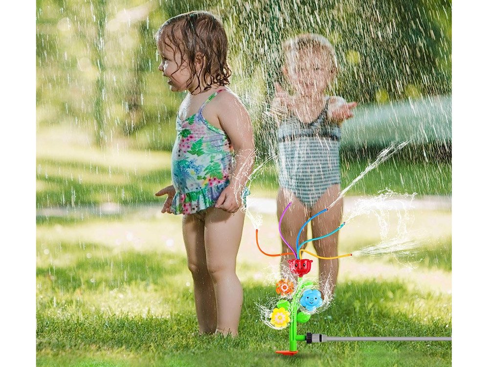 Vesela cvjetna prskalica pružit će puno veselja i smijeha kada krene prskati vodu po djeci. Igračka s mogućnošću spajanja na vrtno crijevo, zahvaljujući pritisku počet će hladiti sve i svakoga oko sebe. Pod utjecajem mlaza vode šarena crijeva počet će ludo mahati na sve strane prskajući vodu, a šareno cvijeće u igrački će se veselo okretati dodatno prskajući vodu. Ovo je odlična ideja za izvrsnu zabavu u vrtu u vrućim ljetnim danima.
