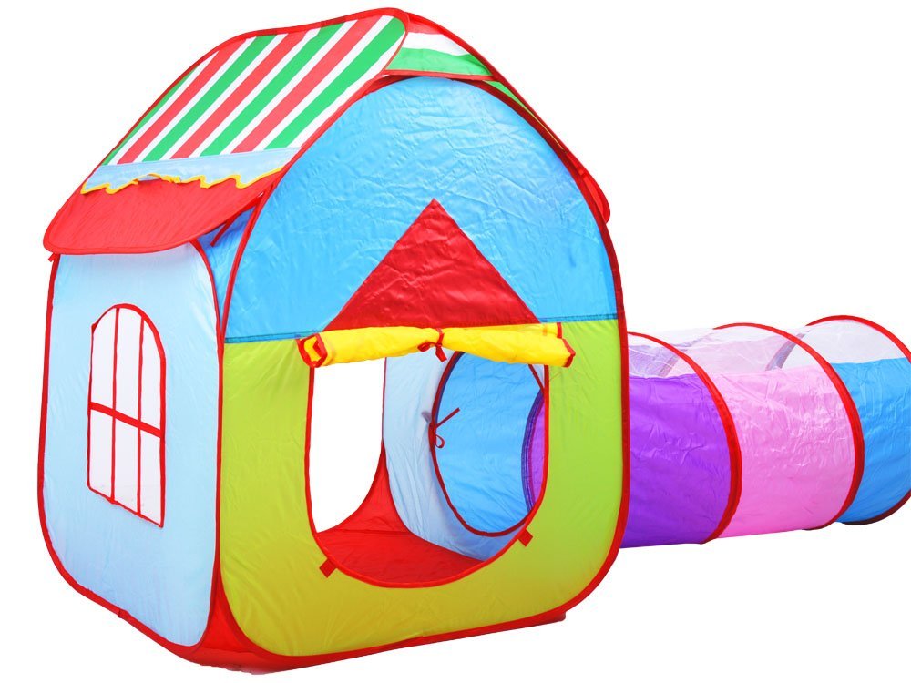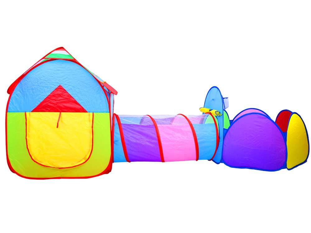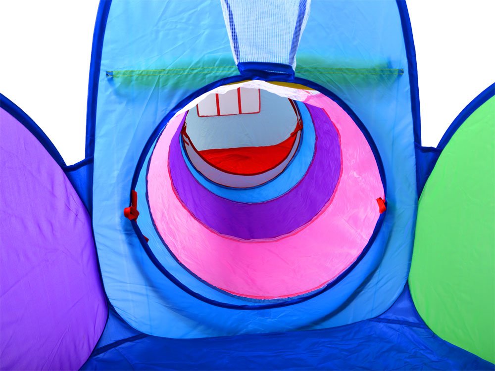 Senzacionalni 3-u-1 set za igru, vrtni šator tunel prijedlog je za svako dijete. Šarenu kuću lako je razložiti, ima tri odvojena elementa za igru. Kućica s prozorima, vrata ima natkriveni ulaz tako da dijete ima trenutak privatnosti. Kućicu je moguće spojiti tunelom, zahvaljujući kojem će mališan moći malo vježbati puzanje i kroz tunel doći do igrališta. Igralište s opcijom za košarku omogućit će svakom malom djetetu da igra svoje igre.