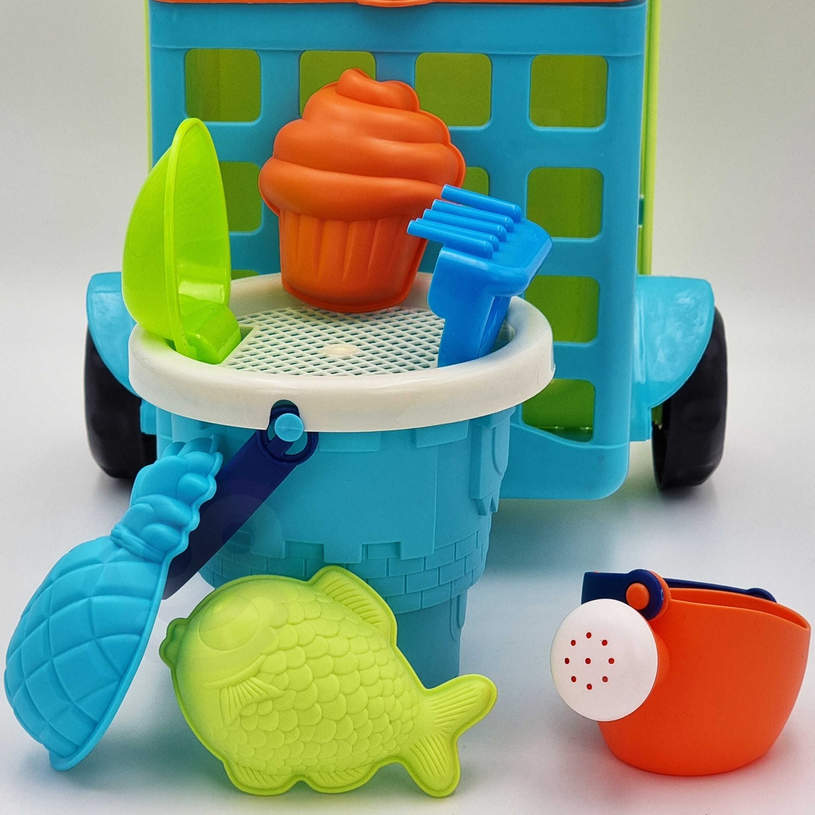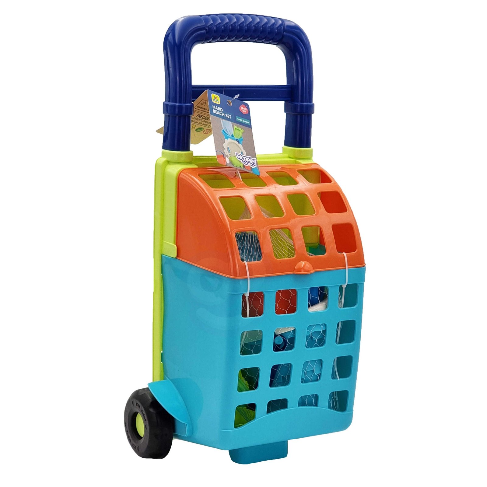 Set pijesak u kolicima tvrtke WOOPIE izvrstan je dodatak pješčaniku ili čak vrtu. Set sadrži 9 elemenata: kolica, kantu, cjedilo, kantu za zalijevanje, 3 kalupa, lopaticu, grablje. Set ima prekrasan neondizajn. Kanta i kanta za zalijevanje imaju udobnu ručku za nošenje. Zajamčena odlična zabava u pješčaniku, na plaži pa čak iu vrtu!