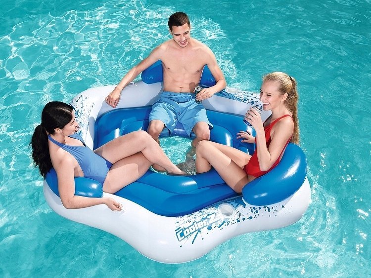 Madrac za plivanje dizajniran je za korištenje do 3 osobe, što ga čini savršenim za obiteljska putovanja ili izlete s prijateljima. Ovaj otok ima ugrađena tri naslona na napuhavanje koji osiguravaju udobnost u korištenju i tri držača za piće. Na sredini otoka nalazi se otvor za noge, zahvaljujući kojem ih možete staviti u vodu. Madrac je izrađen od izdržljivog materijala vinila, tako da nećete morati brinuti da će se oštetiti.
