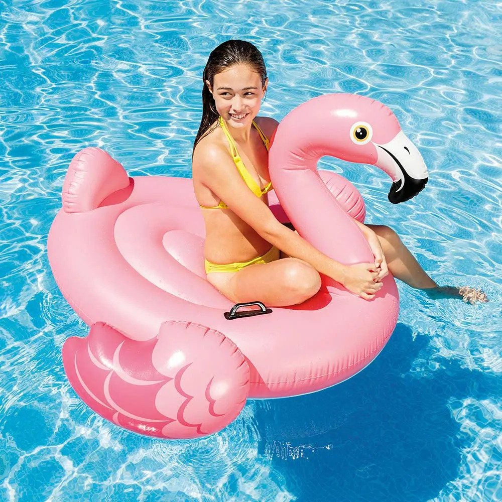 Madrac na napuhavanje u prekrasnom obliku ružičastog flaminga privući će pažnju svakog kupača. Ovaj originalni madrac prijedlog je za sve one koji se vole opustiti i zabaviti uz more. vode.