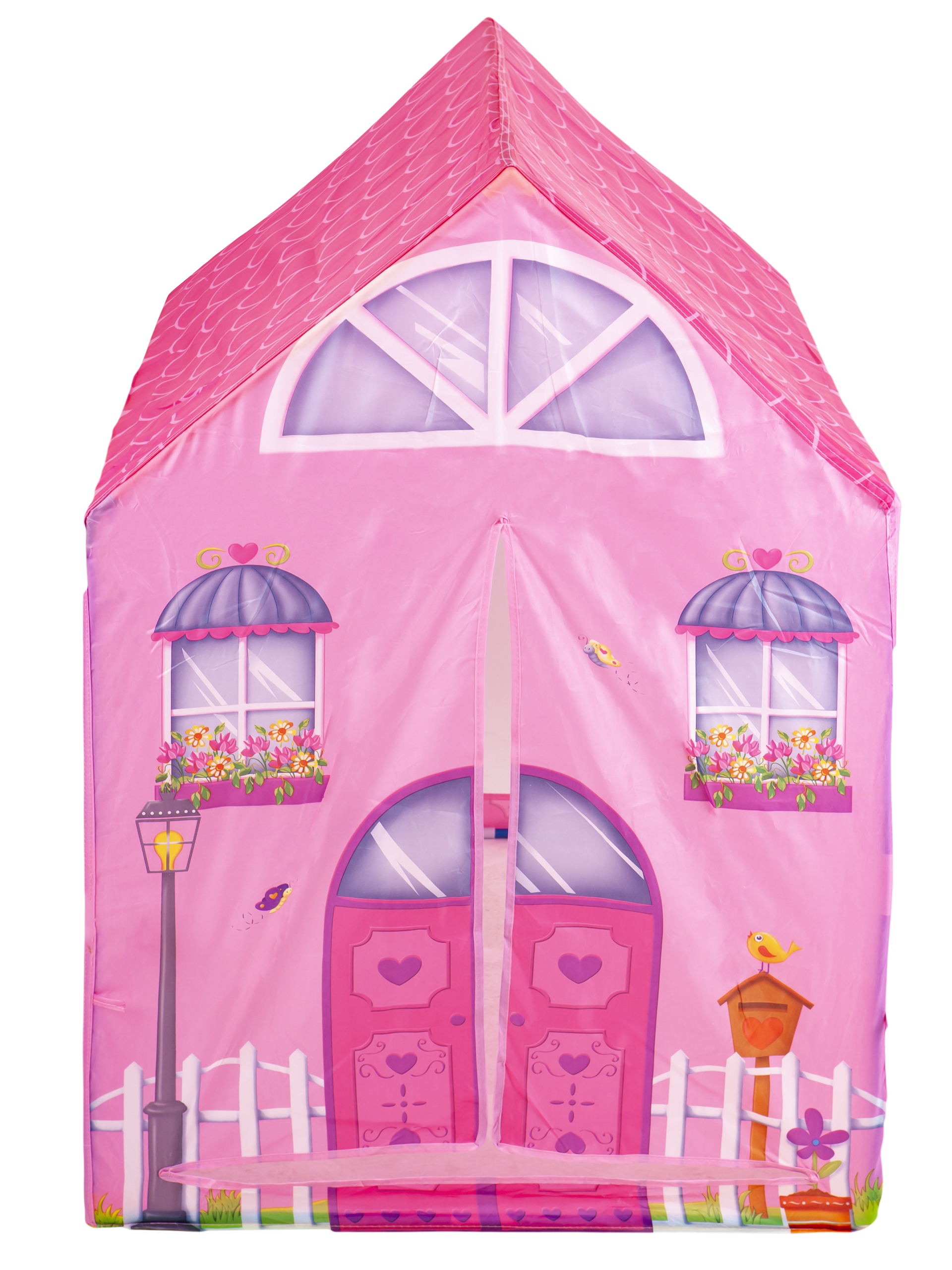 Oblik proizvoda podsjeća na ružičastu kuću – ima krov . Njegov karakter savršeno će se uklopiti u atmosferu djevojačke sobe i bit će zabavan u igri s prijateljima. Šator je praktičan i jednostavan za sastavljanje. Zahvaljujući laganom okviru, lako ga je premještati s jednog mjesta na drugo.