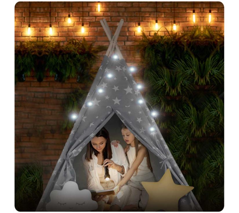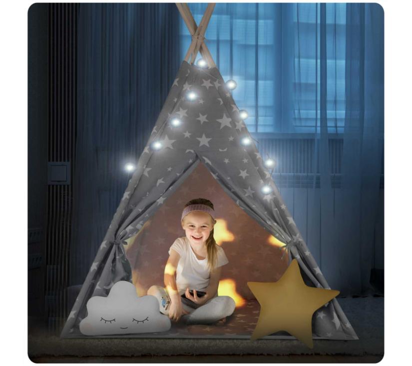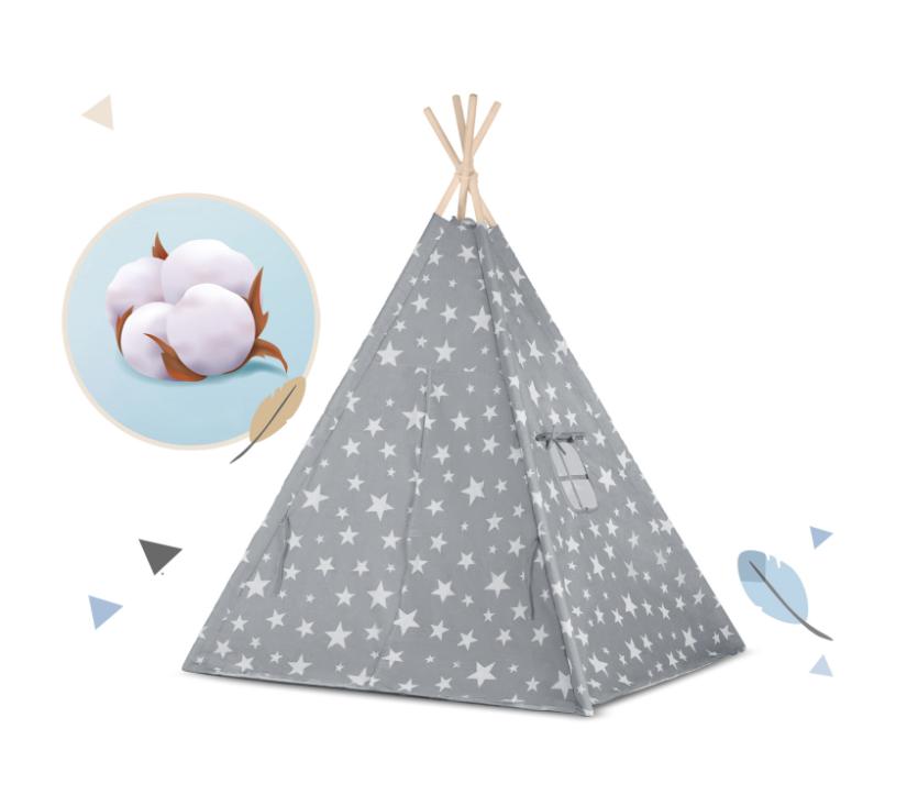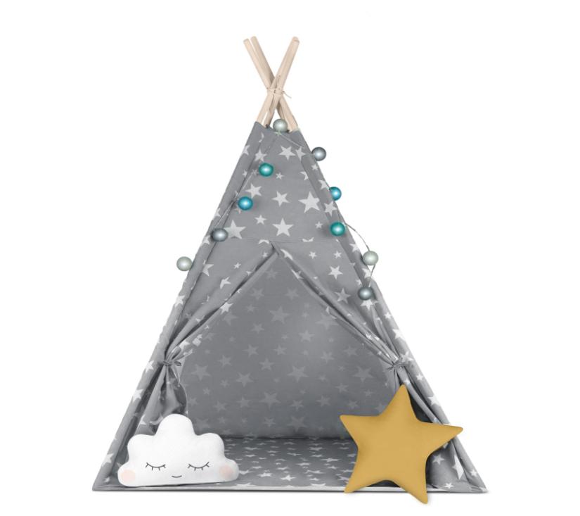 Nukido teepee šator za djecu sa svjetlima – sivi sa zvjezdicama