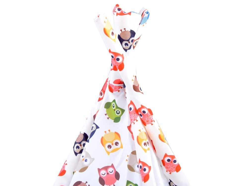 Šator tipa teepee s uzorkom vesele sovice sigurno će se svidjeti svakom mališanu. Djeca vole imati tajne, a takav šator bit će idealno mjesto za skrivanje ili pohranjivanje njihovog blaga. Šator za igru u sobi ili vrtu izrađen je od lako perivog materijala, a cijevi su od plastike. Šator se može postaviti na bilo koje ravno mjesto, bit će savršen za igru u sobi s medvjedićima, lutkama, autićima, a i u vrtu će biti odličan dodatak. Šator ima konopce za spajanje stranica tako da je lako ući i izaći iz njega. S bočne strane šatora nalazi se i prozor kroz koji se vidi da li se netko šulja u šator.