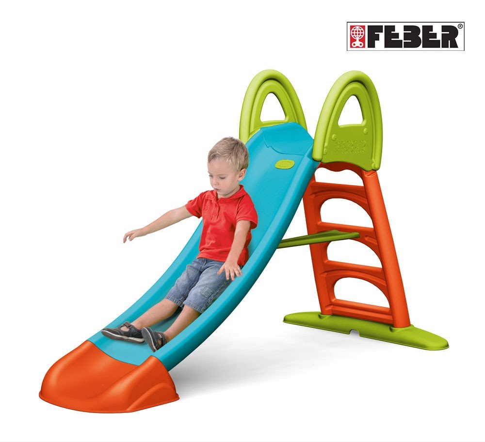 Šareni tobogan španjolske marke Feber za djecu od 3 godine i više. Tobogan dug 190 cm i udobne ljestve s ručkama za ulazak djeteta osigurat će sigurnost . Mogućnost spajanja vrtnog crijeva na tobogan i imate vodeno igralište savršeno za vruće dane. Proizvod je izrađen od izdržljive i otporne plastike s ANTI-UV premazom koji štiti od blijeđenja.