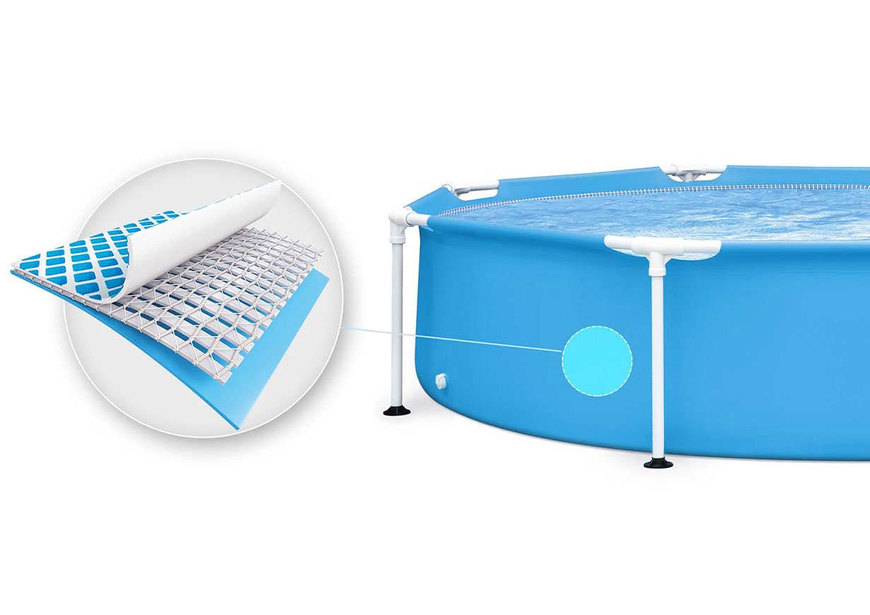 Okvir bazena otporan je na koroziju i dizajniran je da vertikalno podupire bazen. Zahvaljujući njemu voda u bazenu doseže pravu visinu, tako da djeca mogu naučiti plivati.