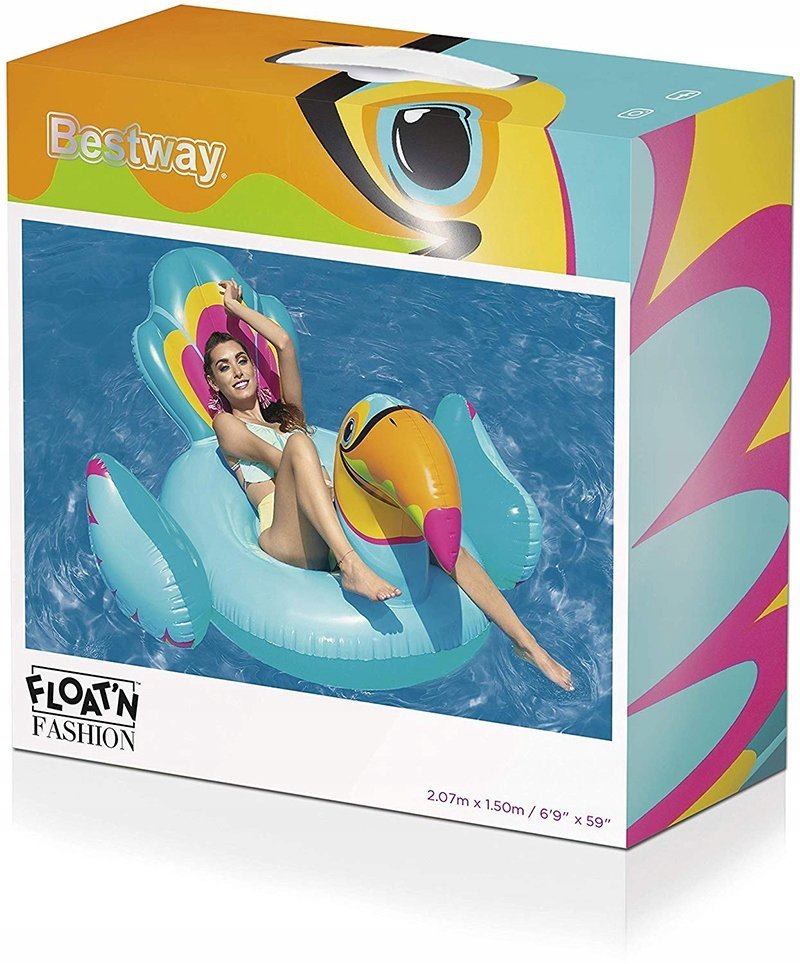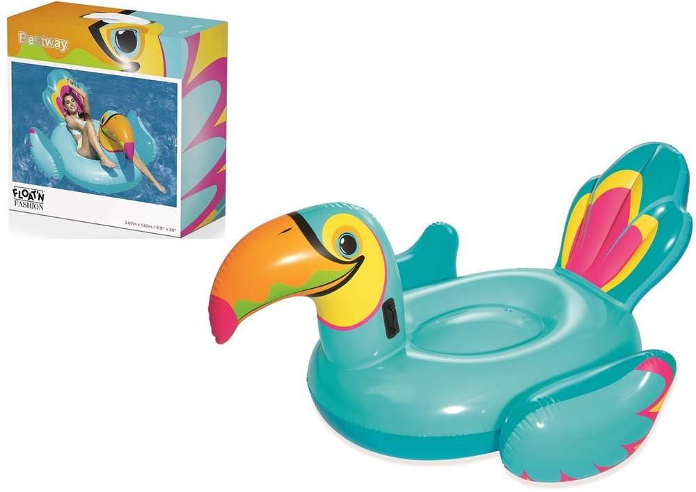 Tukan madrac na napuhavanje odličan je način za opuštanje ljeti. Prekrasne boje i originalan oblik zasigurno će oduševiti sve ljubitelje opuštanja u vodi. Tukan ima dvije stabilne ručke s obje strane i široko sjedalo, što osigurava stabilnost i udobnost pri korištenju. Ovaj dodatak za plivanje na napuhavanje radit će u svim uvjetima, kako na moru, tako i na jezeru i u bazenu. Izrađen je od izdržljivog PVC materijala otpornog na oštećenja i sunčeve zrake.