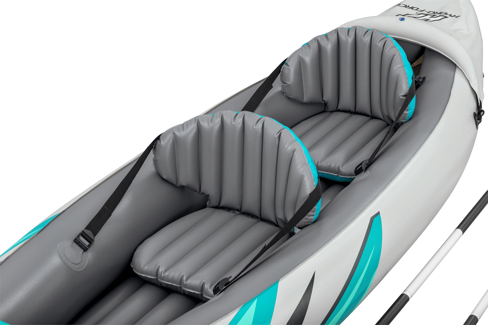 Odlazak na vodu savršen je način za provođenje slobodnog vremena. Kajak je idealan i za rekreativne izlete na jezeru ili bazenu. Izrađen je od izdržljivog vinila otpornog na oštećenja. Udoban kokpit ima dva sjedala na napuhavanje s mekim naslonima za udobnost na dugim vožnjama.