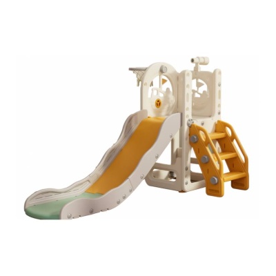 Komplet uključuje dugačak i širok tobogan sa stabilnom konstrukcijom zahvaljujući kojem se lako penje na vrh. Sa strane je obruč za košarku.