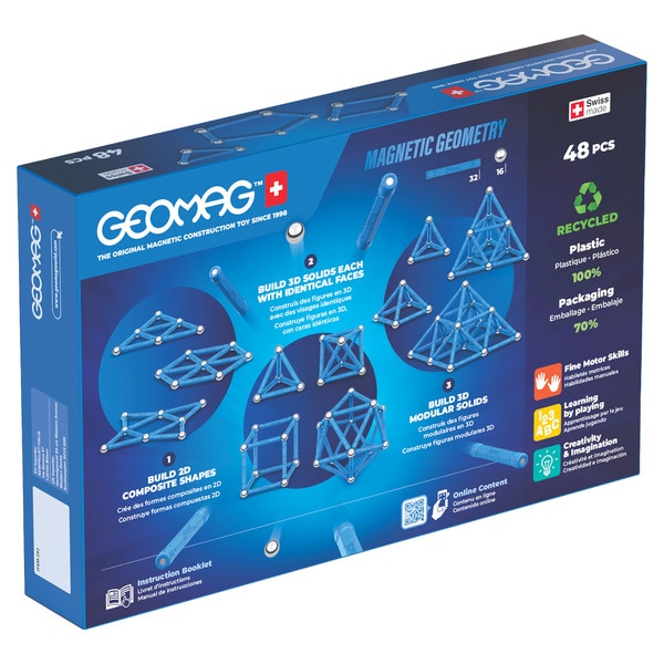 Linija MAGNETIC GEOMETRY obuhvaća najbolje od Geomag Classica, kombinirajući magnetizam s tradicionalnim geometrijskim oblicima, počevši od osnovnih 2D oblika prije prelaska na 3D tijela s identičnim stranama i 3D modularna tijela.