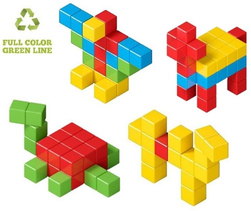Set za igru je najveći set magnetskih kocki u 4 različite boje proizveden od 100% ekološki prihvatljive reciklirane plastike. Pričvršćuju se sa svih strana, osiguravajući jednostavno, kreativno i zabavno 3D građenje. Savršeno za korištenje u svim dječjim vrtićima.