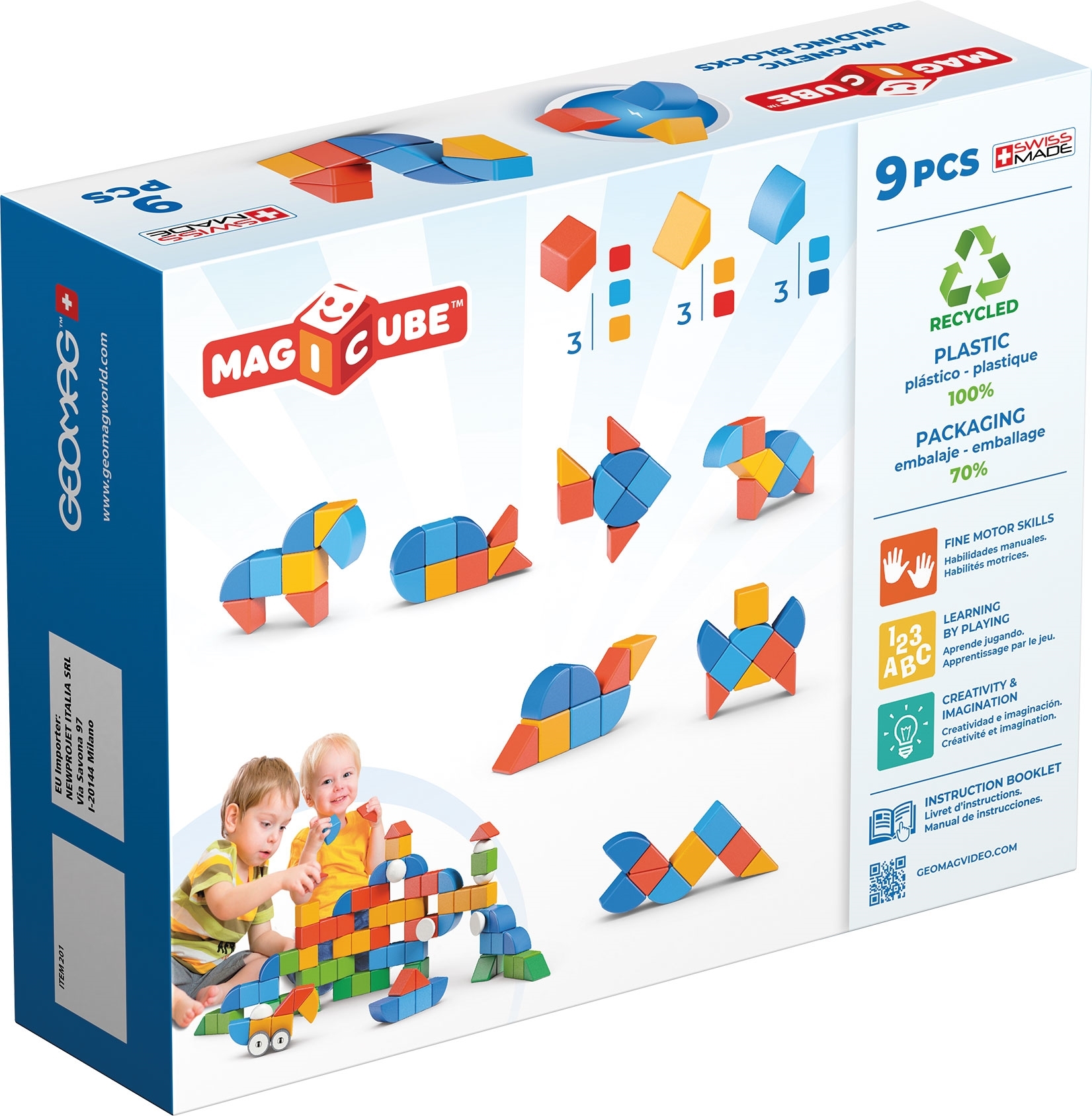 MAGICUBE je revolucionarna platforma Geomagworld proizvoda u kategoriji Junior Construction. Ovaj inovativni sustav gradnje sastoji se od magnetskih kocki koje se spajaju jedna na drugu sa svih šest strana. Iskorištavanjem nevidljivih i magičnih svojstava magnetizma, djeca mogu dati na volju svojoj mašti dok izrađuju šarene 3D modele. Samo igrajući se s nekoliko kockica, čak i najmlađa djeca počinju razvijati motoriku. Reciklirana linija Magicube proizvedena je od 100% reciklirane plastike s visokim standardima kvalitete.