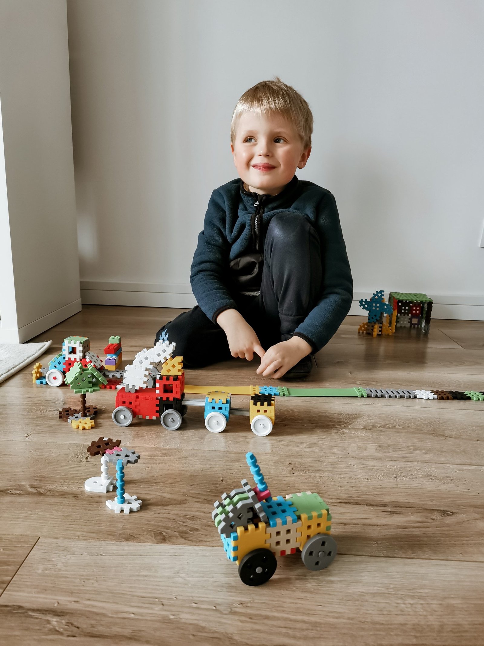 Ovaj set nudi neograničenu gradnju! Raznolikost posebno dizajniranih elemenata i njihovo obilje omogućuju stvaranje trodimenzionalnih oblika vozila, zgrada i likova prema priloženim uputama. Vaše će dijete s entuzijazmom i vještinom pravog stručnjaka izraditi kuću, vjetrenjaču, avion, vlak ili helikopter. A ako žele, mogu izraditi bilo koji oblik koristeći samo svoju maštu! To potiče djetetovu maštu, razvija motoričke sposobnosti i uči logično razmišljanje.