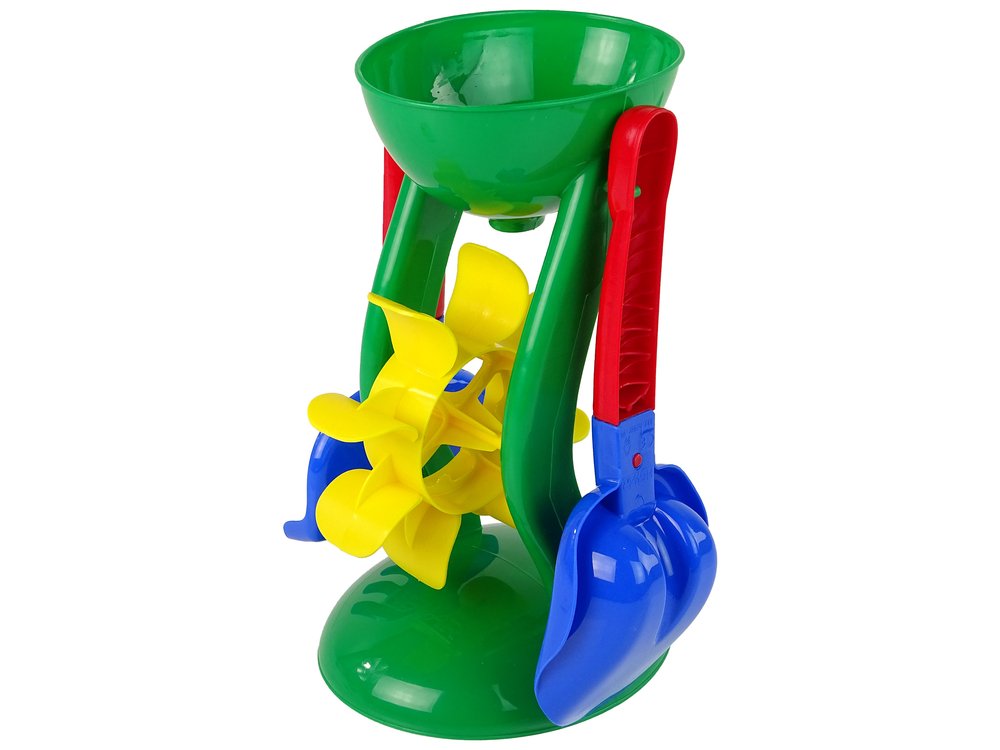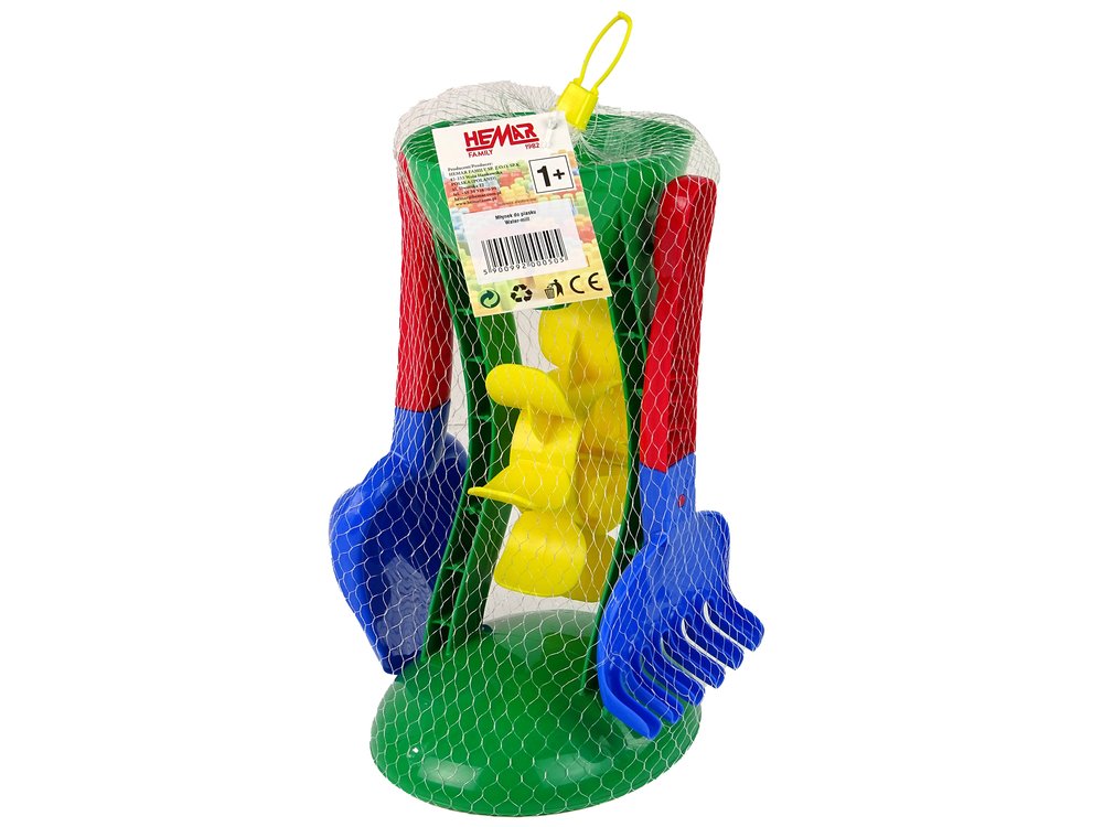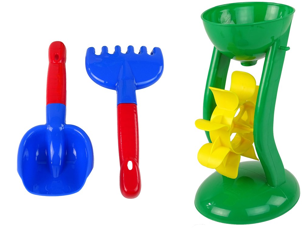 Mlinac, koji u setu uključuje lopatu i grablje, može se koristiti kako za sipanje pijeska na plaži, tako i za polijevanje vodom dok se igrate u kadi .
