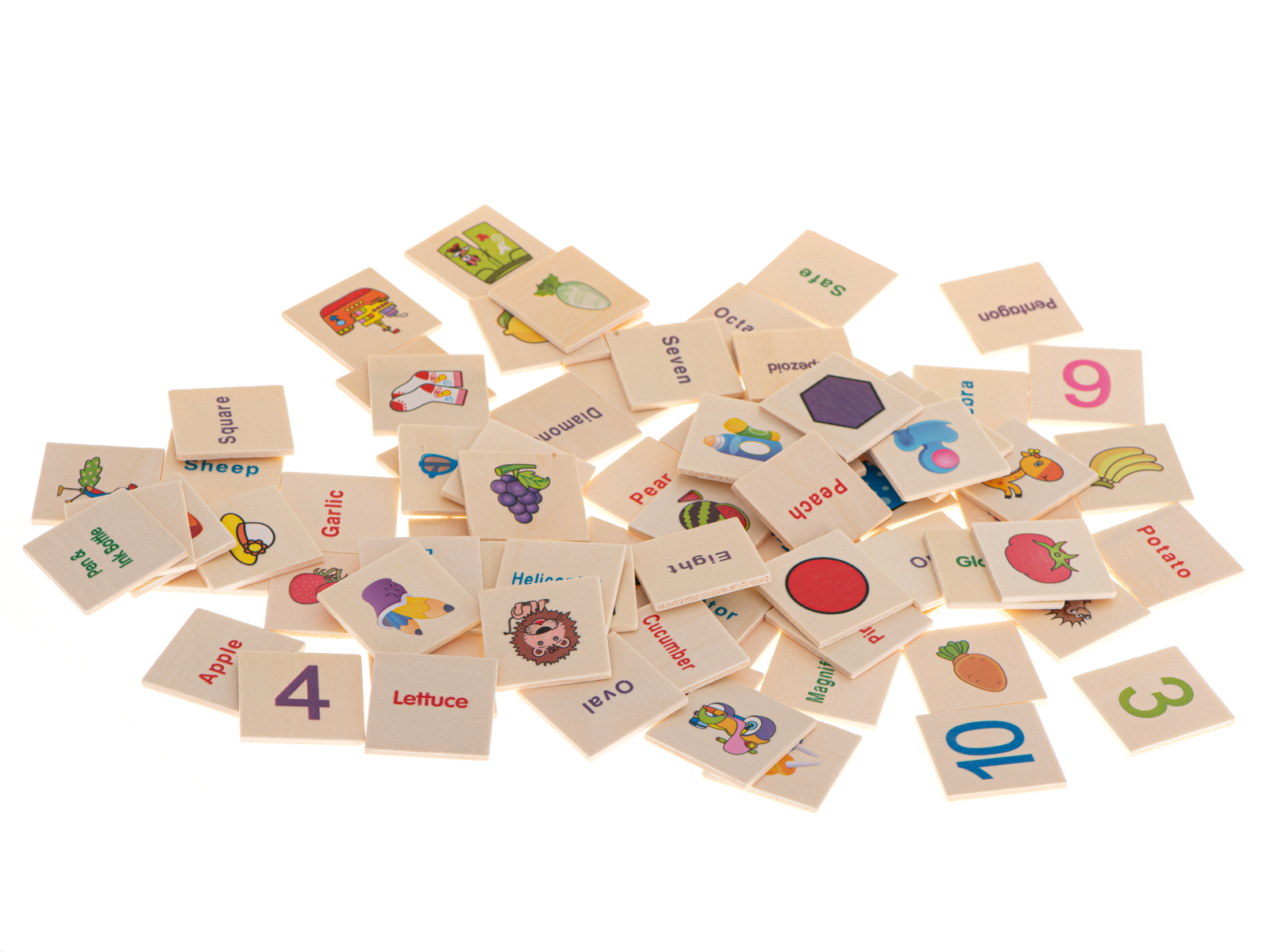 Na pločama se nalaze engleski nazivi brojeva, životinja, predmeta itd.