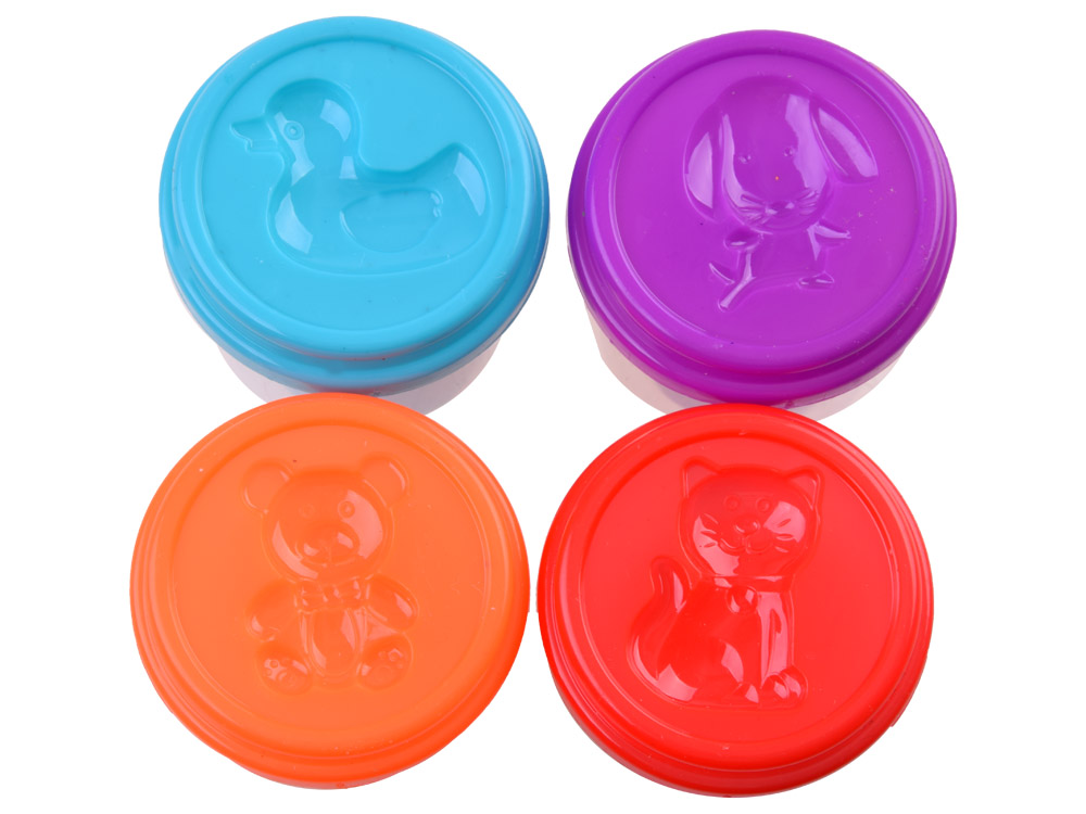 Plastična masa u 4 čašice s poklopcima na kojima možete preslikati razne uzorke, npr. životinje, pružit će svakom djetetu puno kreativne zabave.