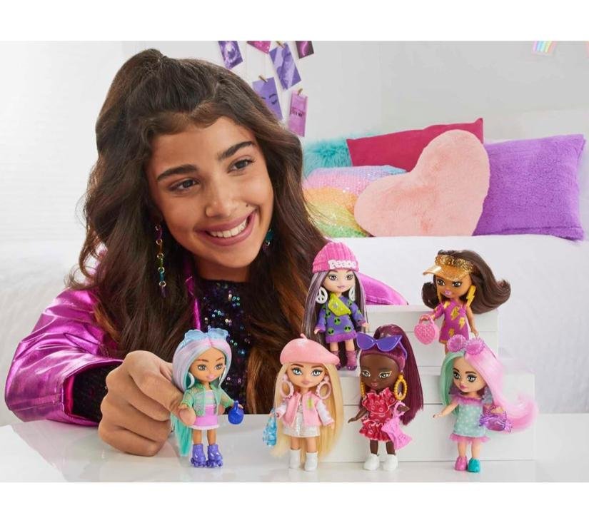 Serija Barbie Extra Mini Minis donosi minijaturne lutke s odvažnim stilom, prepunim boja, uzoraka i upečatljivih modnih dodataka. Svaka lutka prava je mala fashionistica, a zahvaljujući kompaktnoj veličini može poslužiti i kao mlađa sestra ili kći klasične Barbie.